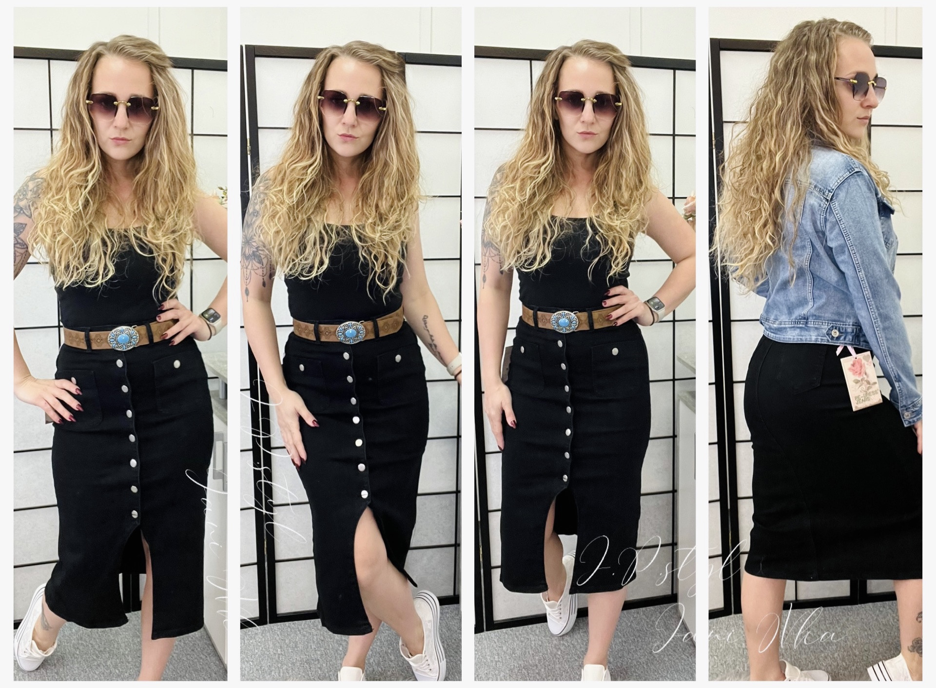 DLOUHÁ ČERNÁ SUKNĚ S KNOFLÍČKY