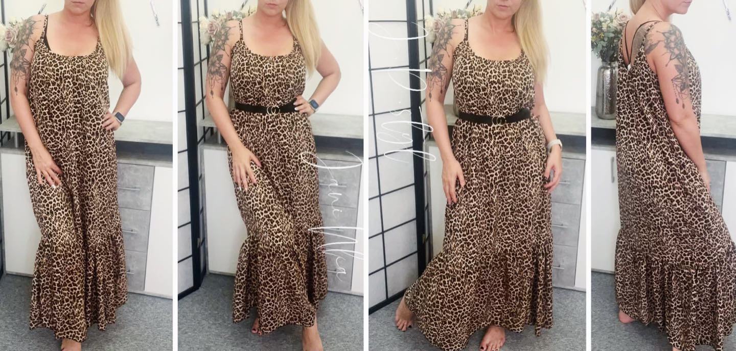 Tyto šaty kombinují módní vzor s praktickým a pohodlným střihem, který podtrhne Vaši osobnost a styl.