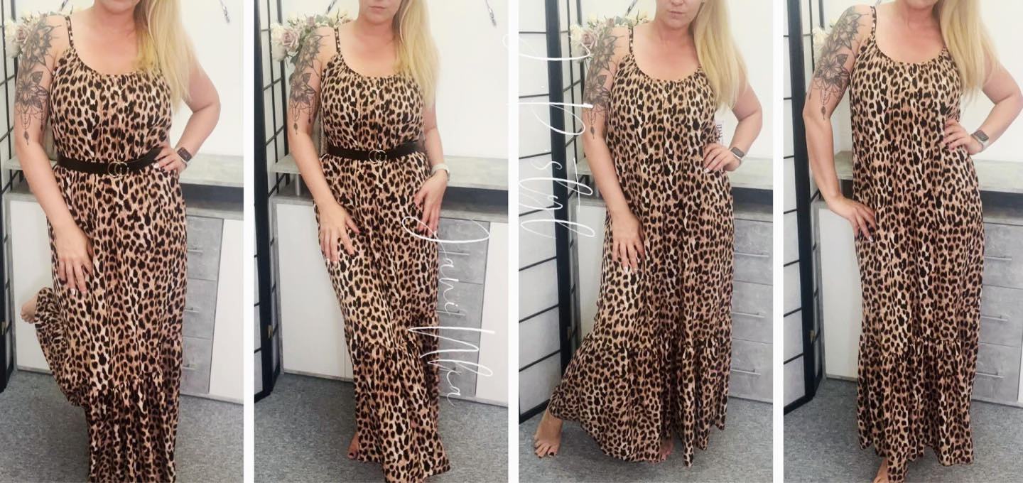 Tyto šaty kombinují módní vzor s praktickým a pohodlným střihem, který podtrhne Vaši osobnost a styl.