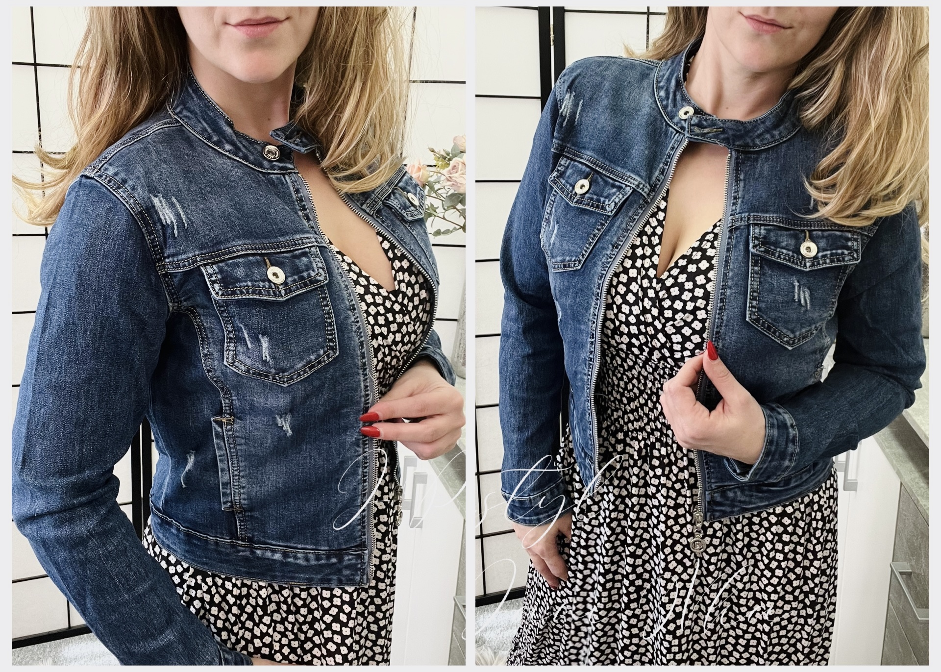 🌸Stylová tmavě modrá riflová bunda🌸 s praktickým zapínáním na zip.