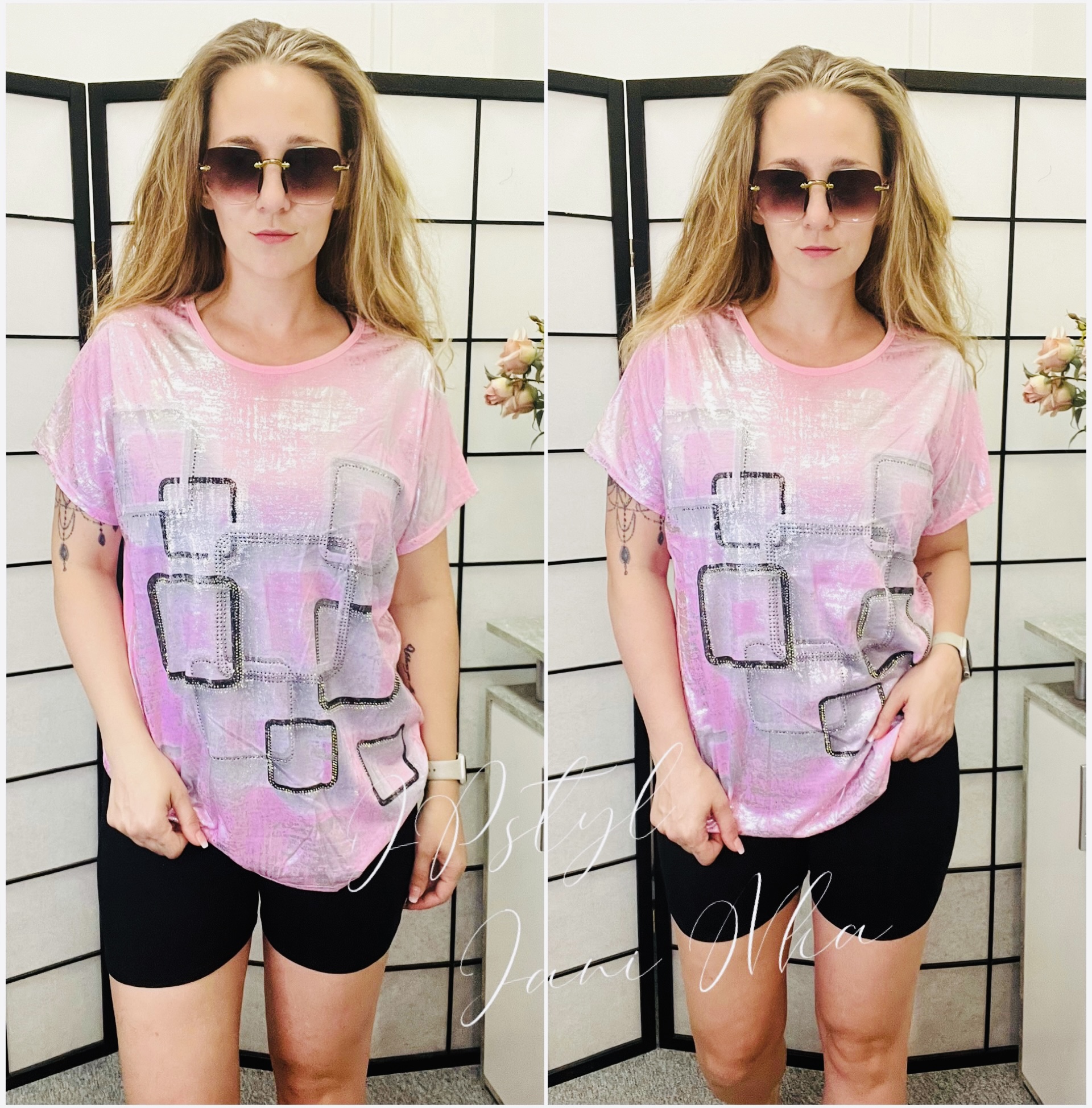 - z přední strany potisk třpytivý, zadní díl jednobarevný