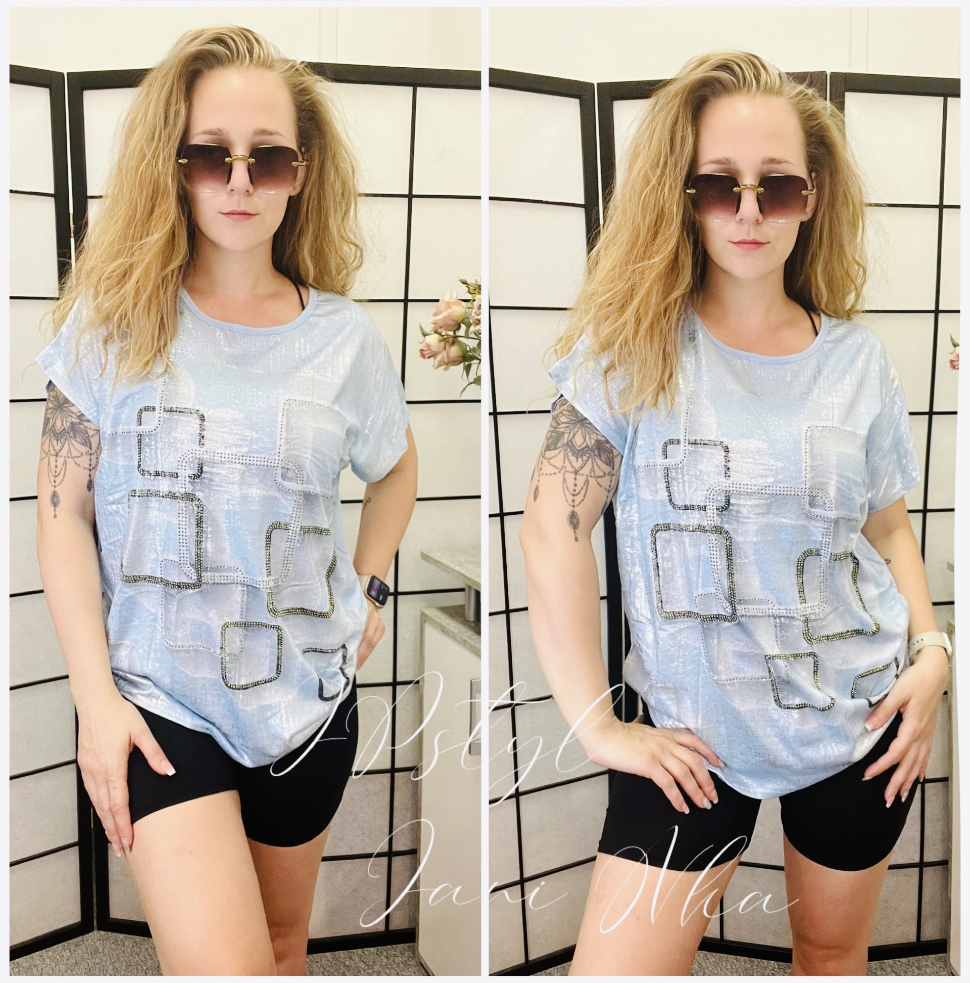 - z přední strany potisk třpytivý, zadní díl jednobarevný