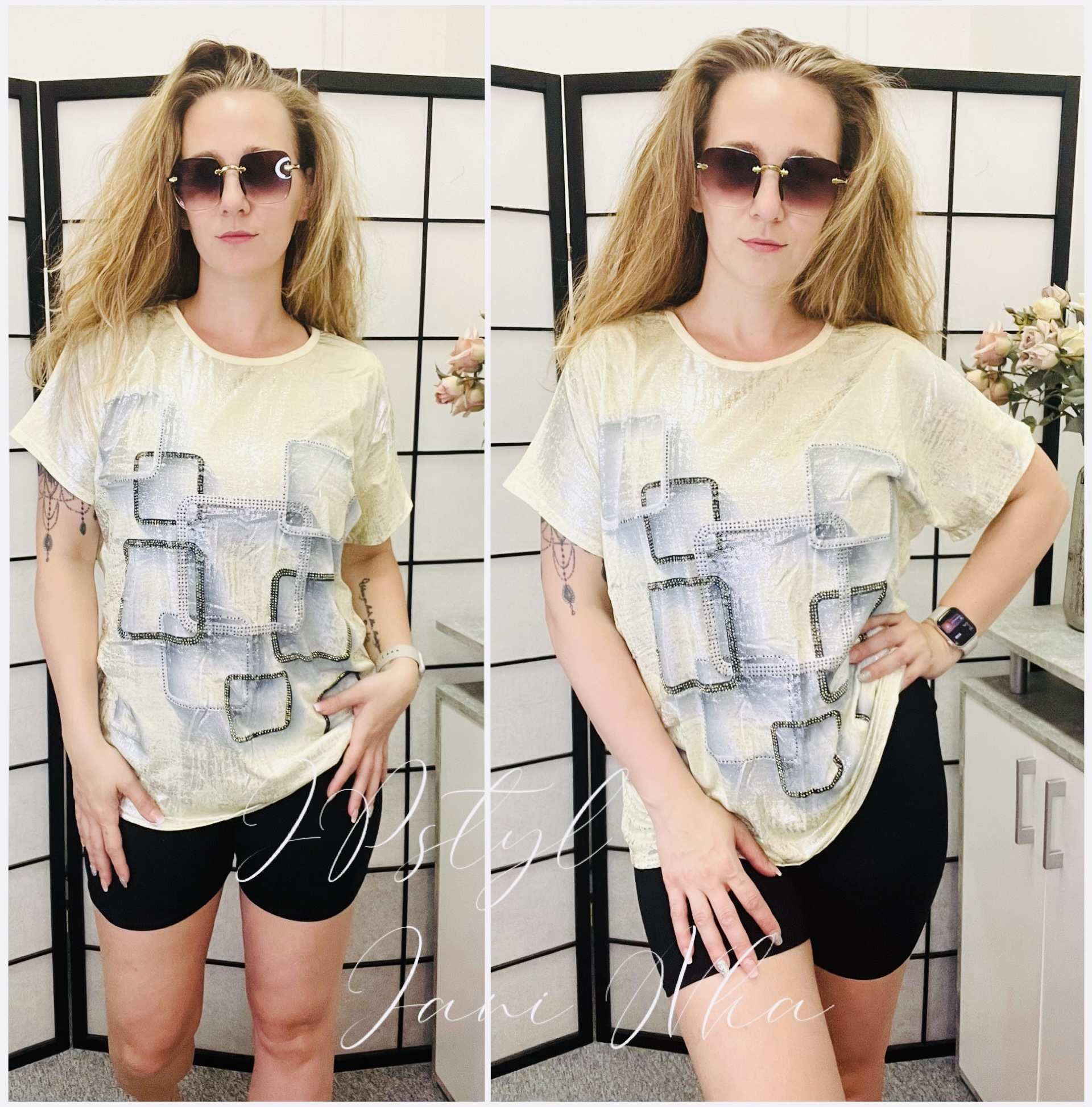 - z přední strany potisk třpytivý, zadní díl jednobarevný