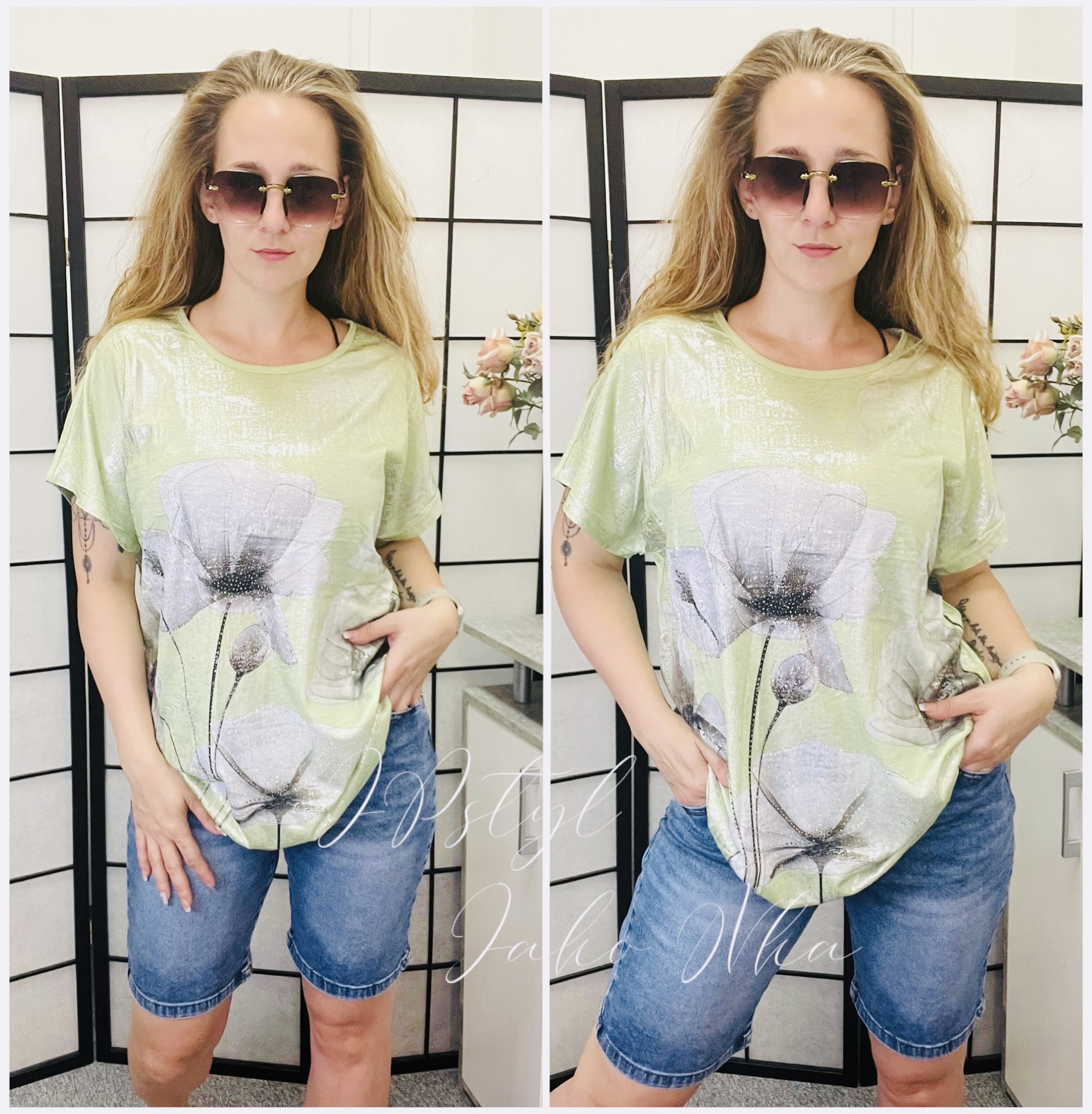 Halena Lea kulatý výstřih netopýři střih z přední strany potisk třpytivý, zadní díl jednobarevný 95% polyester, 5% elastan   Rozměr: L/XL - délka 72cm, šířka v podpaží 2* 62cm 2XL/3XL - délka 74cm, šířka v podpaží 2* 64cm celý popis