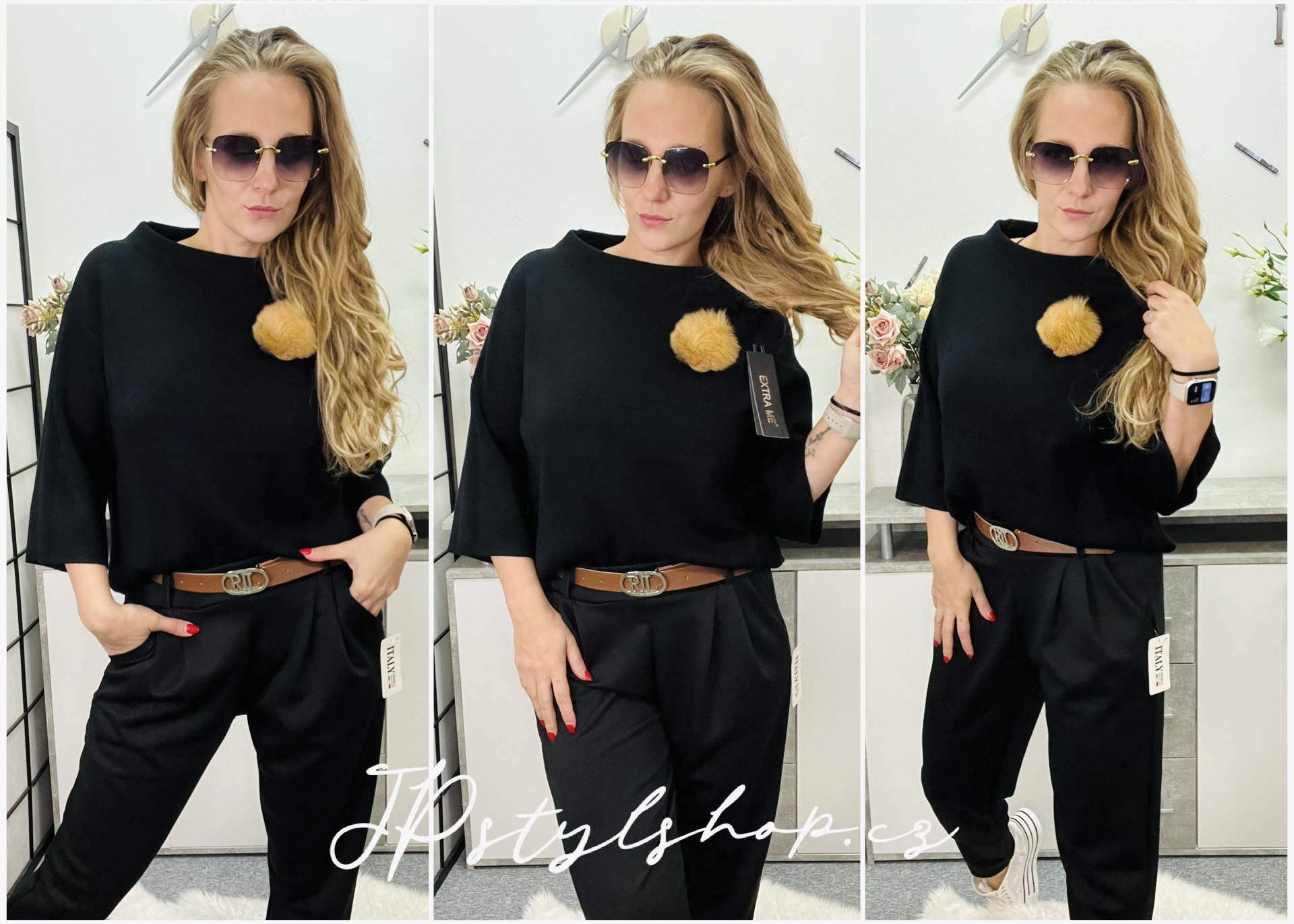 Elegantní halenka s lodičkovým stojáčkovým výstřihem, který krásně zvýrazní dekolt. Rukávy v délce 7/8 jsou ideální pro přechodná období. Vyrobena z pružné a příjemné úpletoviny, která se skvěle přizpůsobí Vaší postavě a nabízí maximální pohodlí po celý den. Ozdobná bambula je odepínací - dle Vašeho vkusu a stylu.