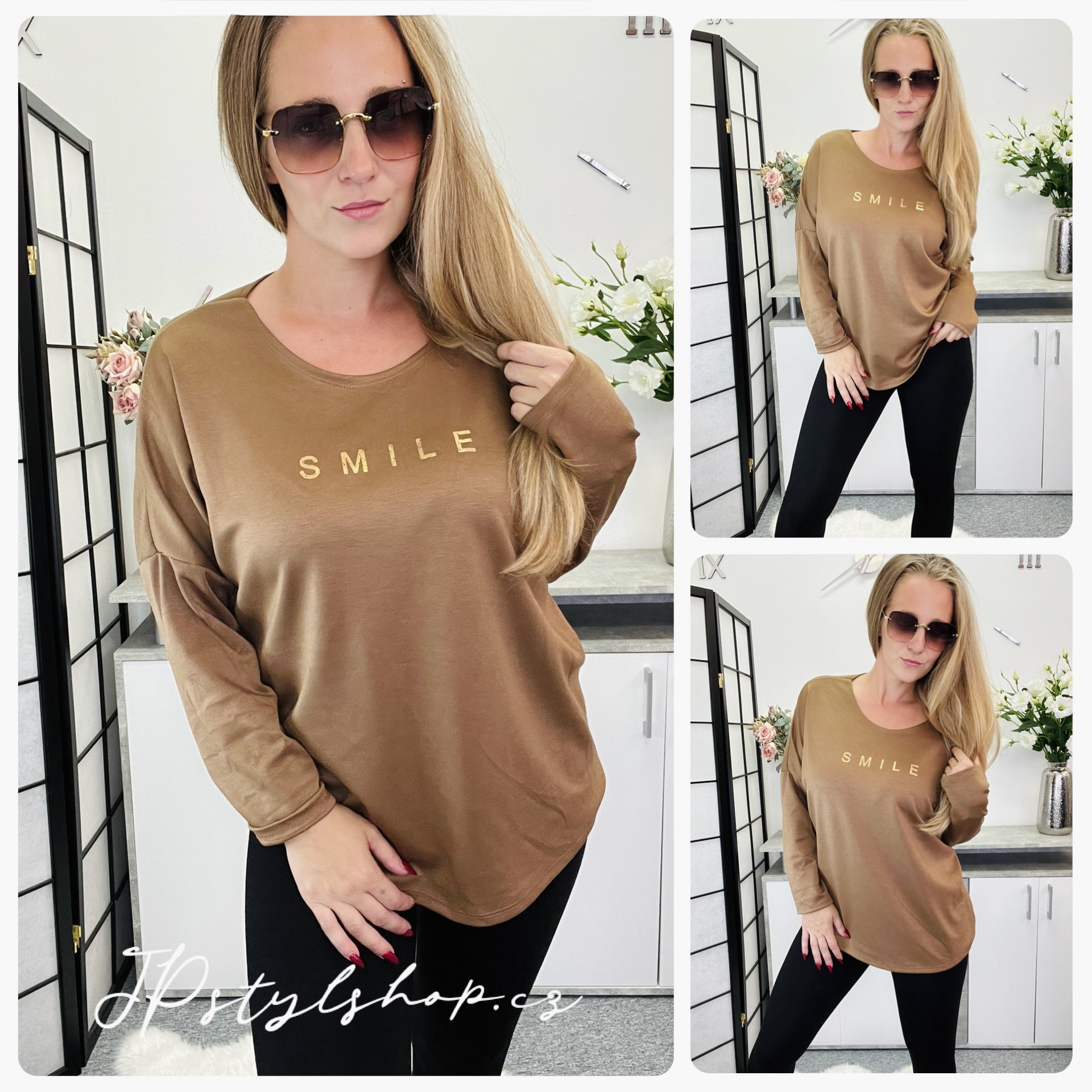 🍁🍂 Objevte komfort a styl v naší jednobarevné halence se zlatým potiskem smile s moderním širším střihem, která skvěle sedí a nabízí volnost pohybu. 🍁🍂 Výstřih do lehkého véčka dodává modelu jemný ženský nádech 🍂🍁