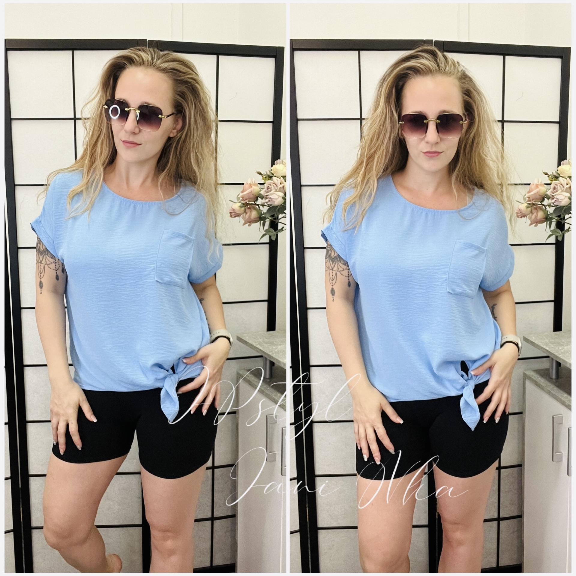 🍀Volná halenka se spodním vázáním, které umožňuje individuální nastavení šířky a zajišťuje dokonalé přizpůsobení postavě.🍀 Má kulatý výstřih pro pohodlné nošení a malou kapsičku na prsou, která dodává modelu praktický a stylový detail.🍀 Ideální k nošení v teplejších dnech, kdy oceníte lehkost a vzdušnost materiálu. 🍀