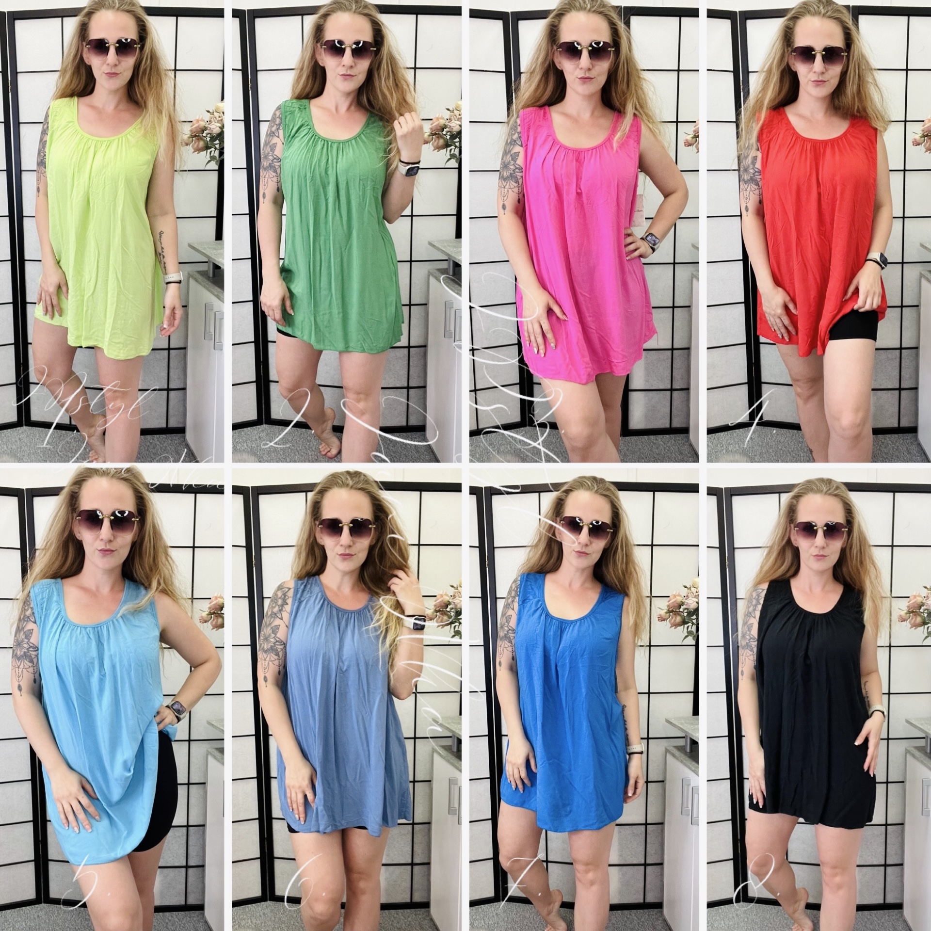 Jednobarevné prodloužené tílko Olga kulatý výstřih s řasením široké ramínka volný širší střih velmi pružné, velmi lehounkou - prodyšné - top kousek na léto 95% viscosa, 5% elastan velikost oversize sedne až do XXXL délka 78cm, šířka v podpaždí 2* maximá... celý popis