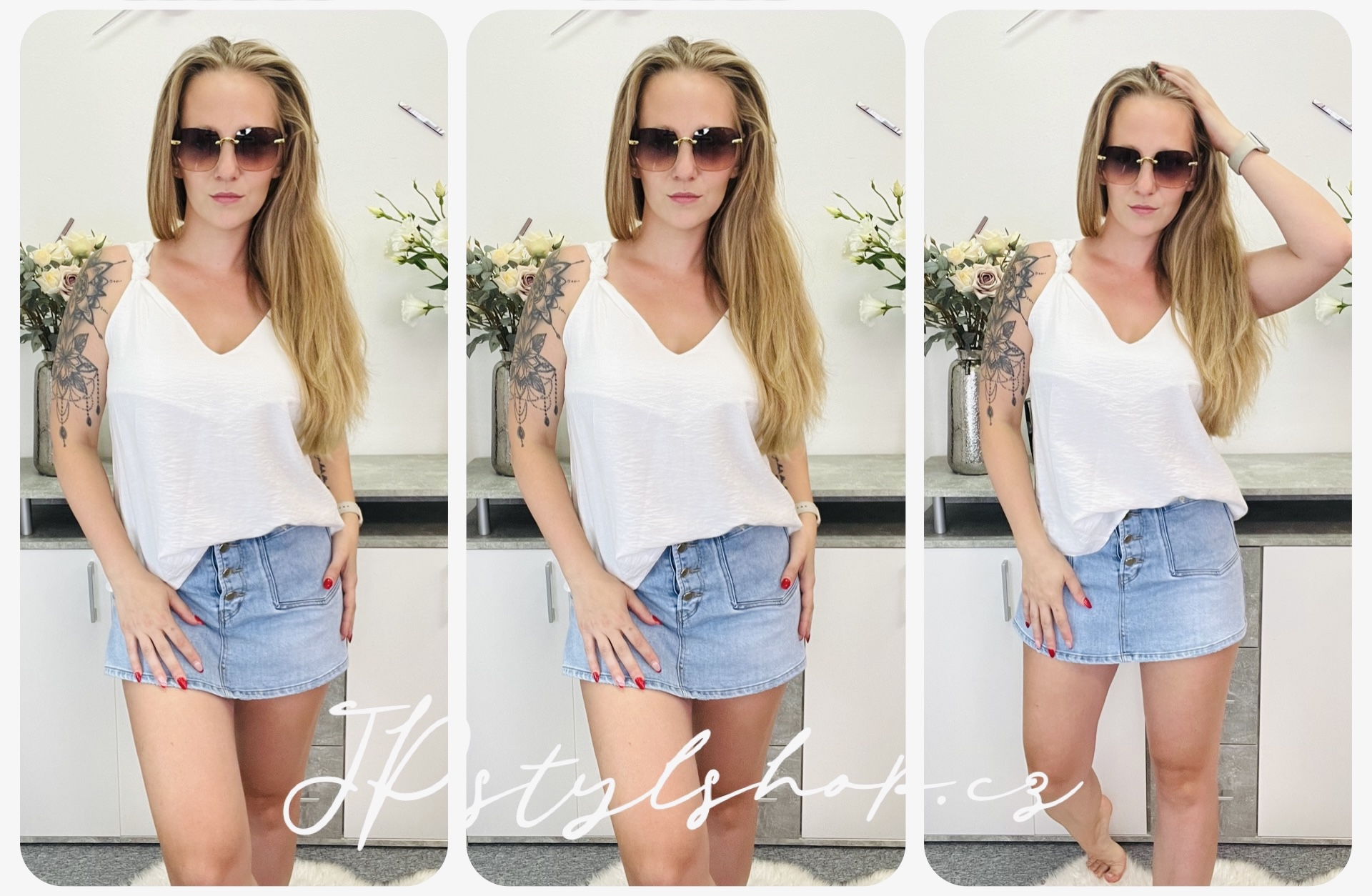 🌸Jednobarevné tílko, vyrobené z velmi příjemného a kvalitního materiálu obsahující 88% viskózy a 12% nylon. 🌸 Tílko je opatřeno šiřšími ramínky s elegantním zdobením, které dodává modelu zajímavý detail.🌸