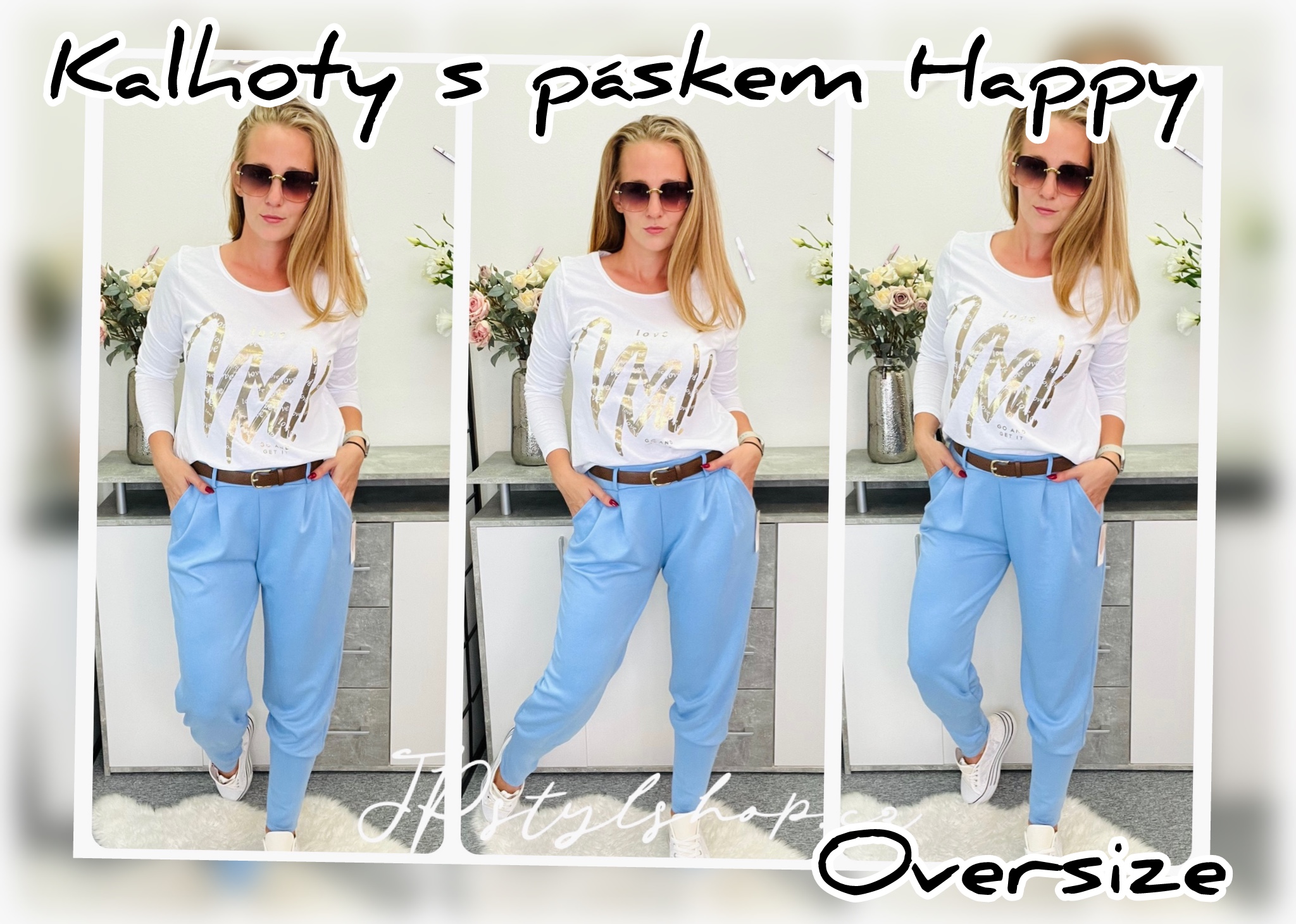 🍁🍂Luxusní kalhoty s páskem Happy 🍂🍁