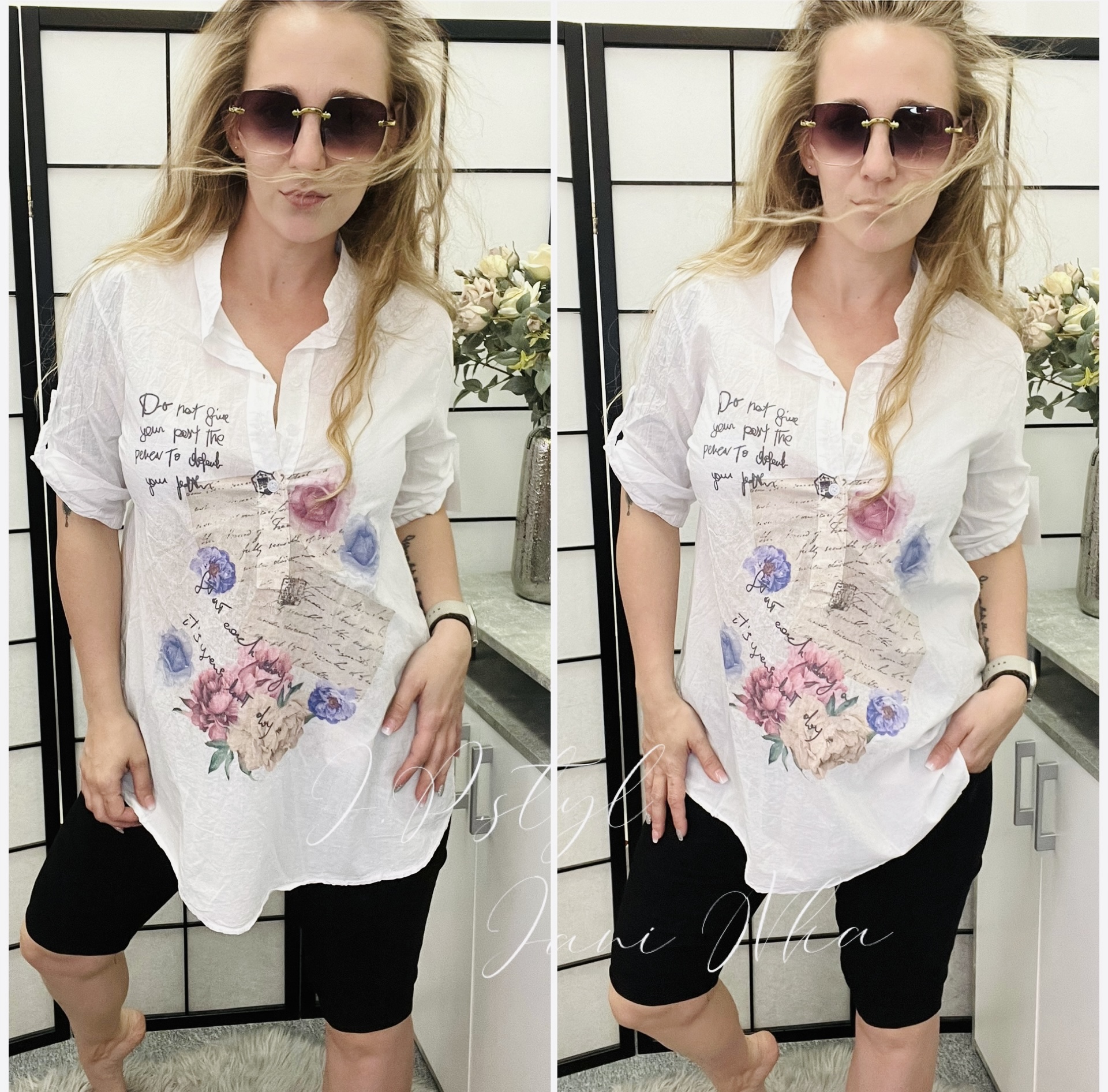 Košilová halenka s potiskem - IISkladem 1 ks229 Kč/ ks189 Kč bez DPH