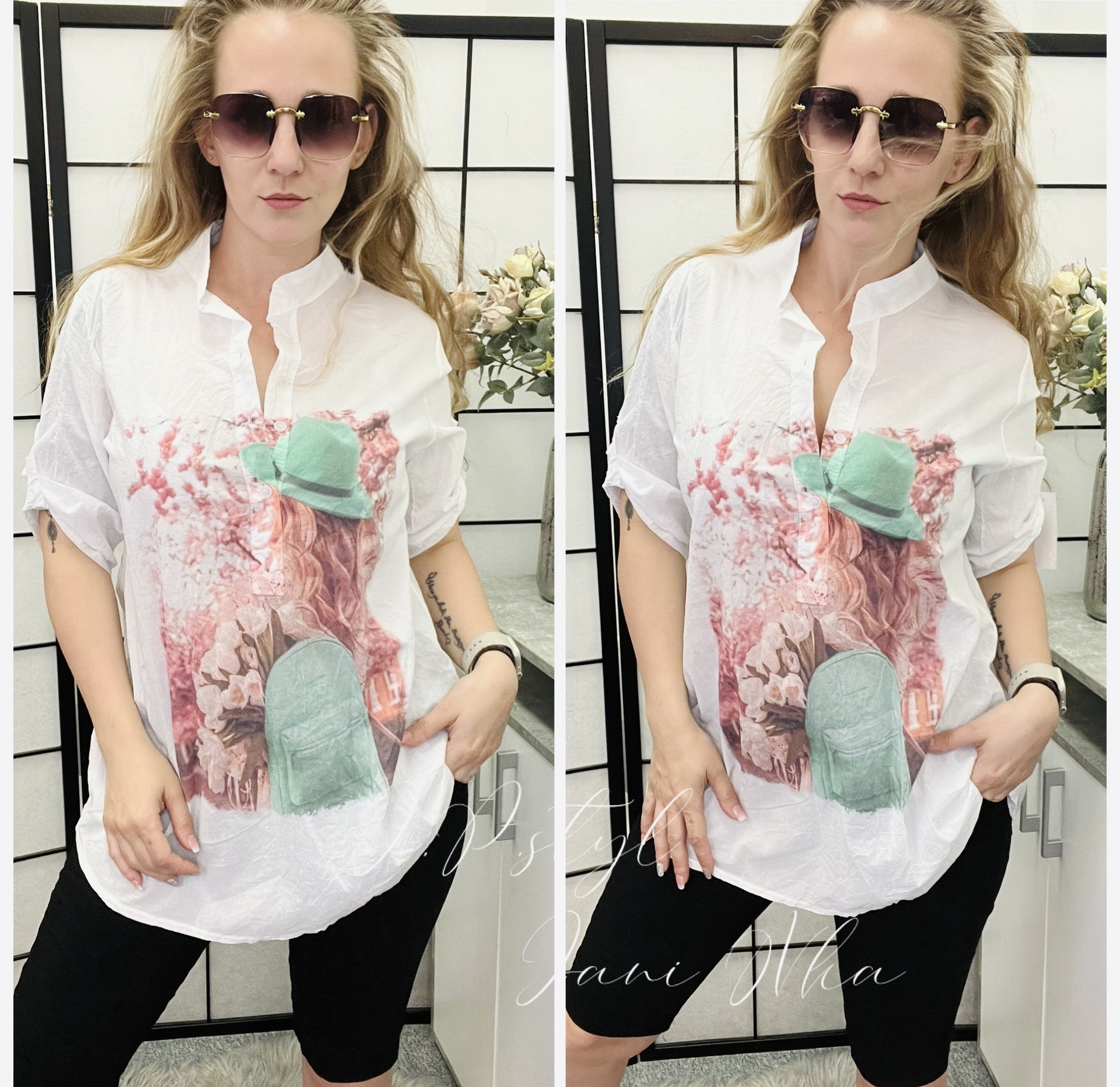 Košilová halenka s potiskem - IXSkladem 1 ks229 Kč/ ks189 Kč bez DPH