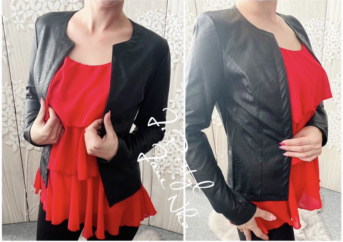 🌸Koženkové sako bez zapínání🌸představuje moderní a elegantní kousek vhodný pro různé příležitosti.