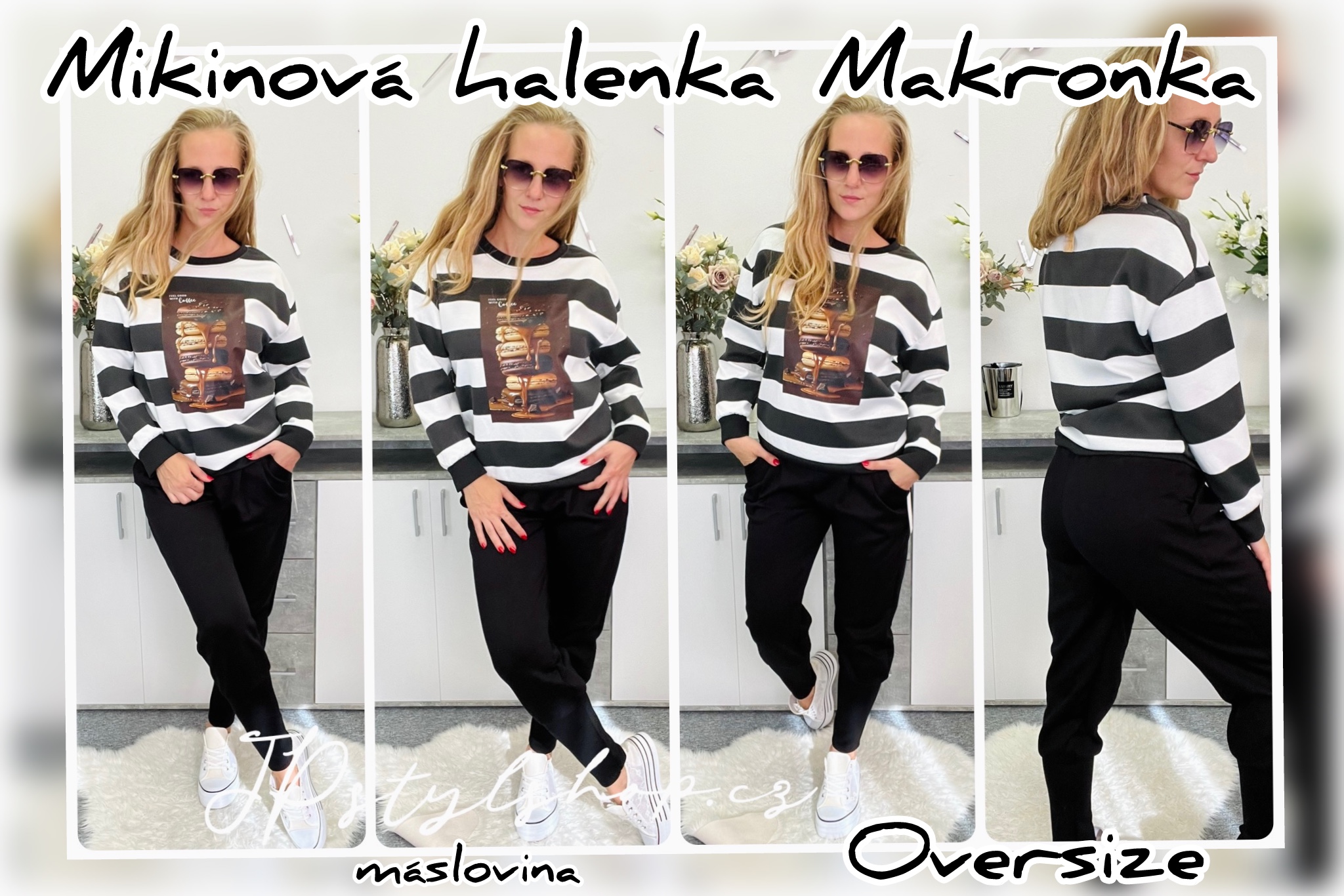 Mikinová halenka Makronka   🍂🍁Stylová mikinová halena v trendovém pruhovaném designu, která osvěží Váš šatník. Přední dekorativní potisk makronek dodává jedinečný a hravý detail. 🍁🍂 🍂🍁Kulatý výstřih a dlouhý rukáv zakončený praktickým lemem pro dokonalé přizpůsobení. 🍁🍂Oversize střih nabízí pohodlí... celý popis