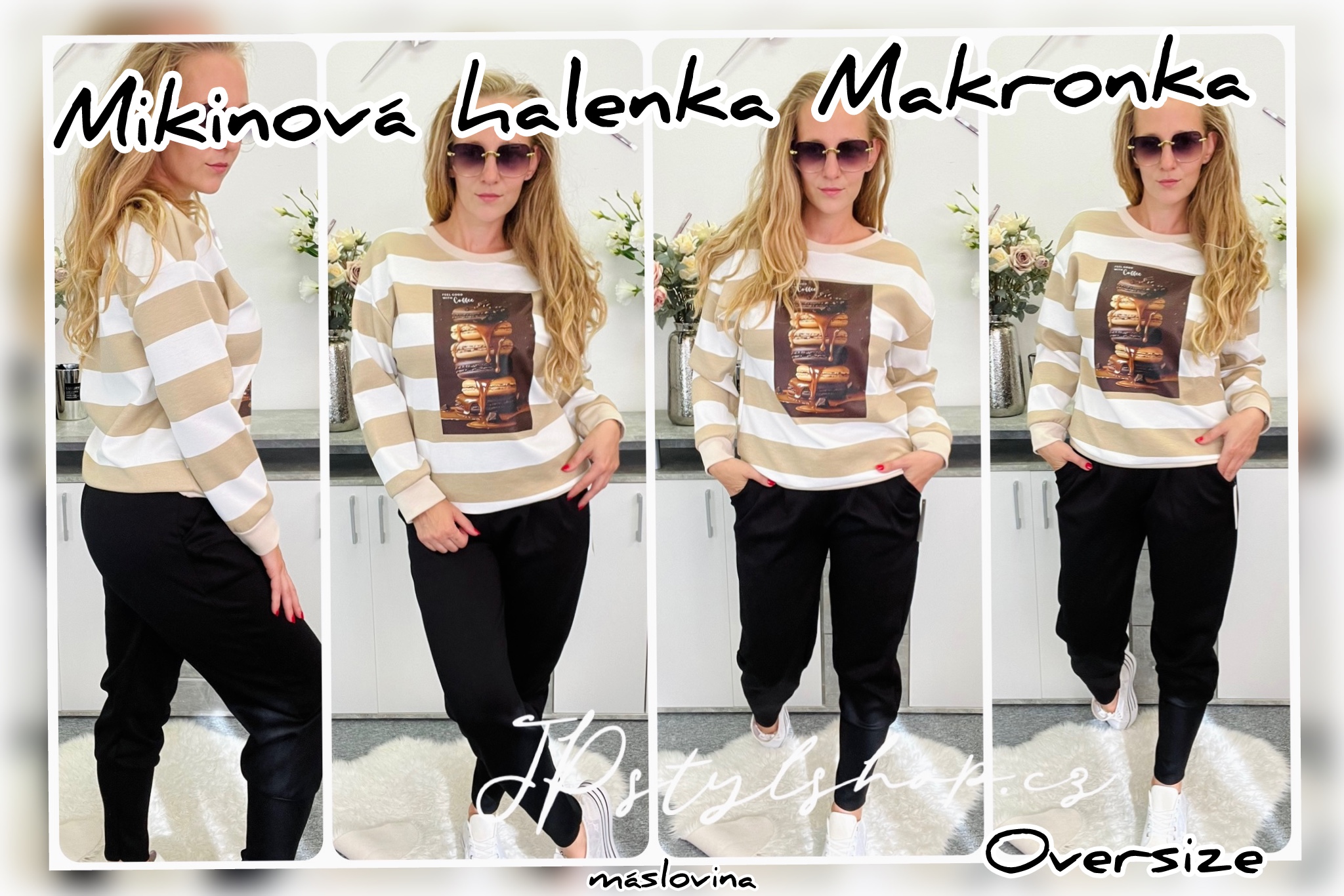 🍂🍁Stylová mikinová halena v trendovém pruhovaném designu, která osvěží Váš šatník. Přední dekorativní potisk makronek dodává jedinečný a hravý detail. 🍁🍂