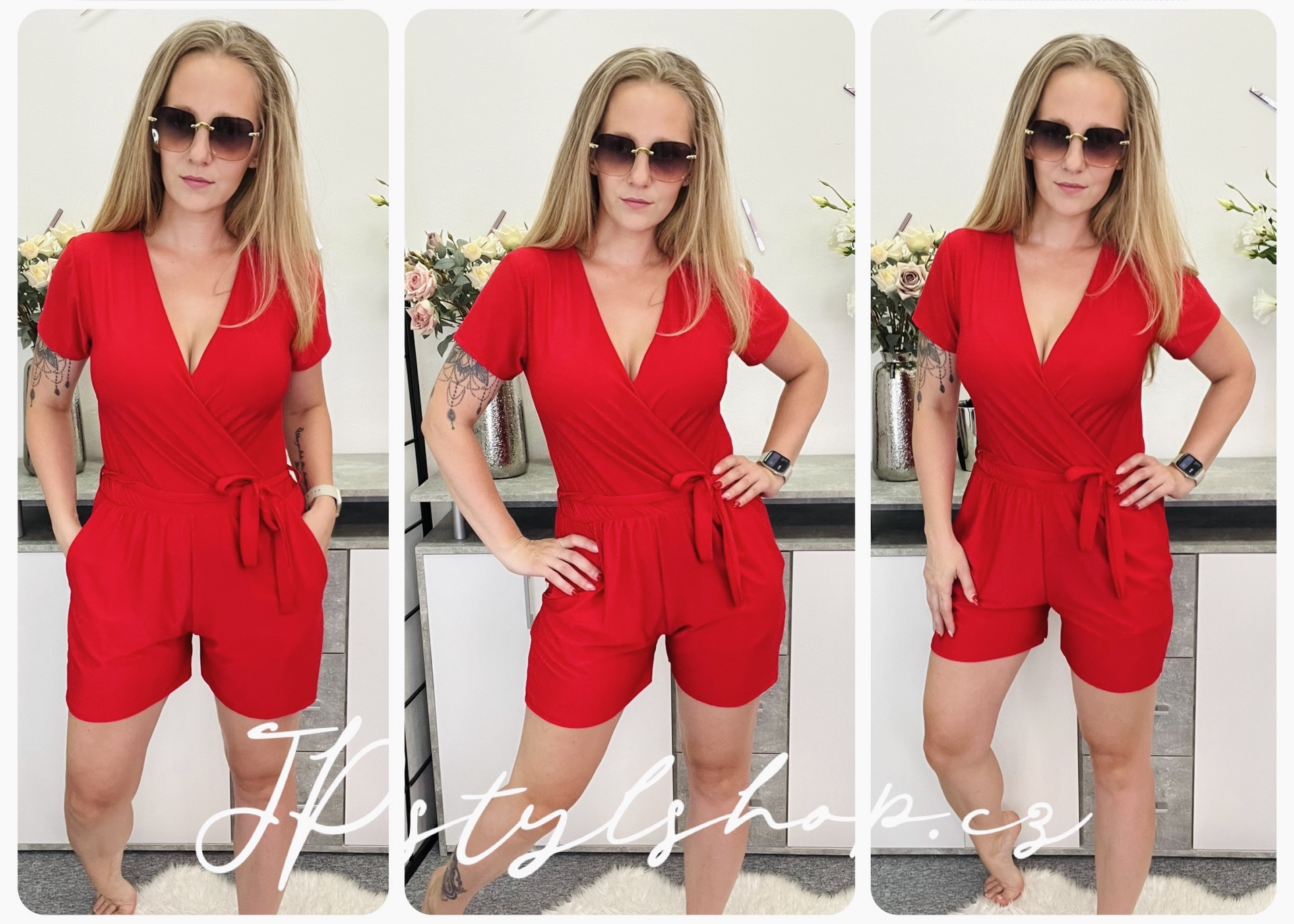 🌸Krátký overal s překříženým vrškem, který efektně zvýrazňuje dekolt. 🌸 V pase je guma pro pohodlné nošení, doplněná o pásek pro dokonalé přizpůsobení a zvýraznění postavy. 🌸  🌸 Materiál je velmi příjemný, pružný a pohodlný, díky čemuž overal skvěle padne a dodá Vám elegantní a slušivý vzhled, ideál... celý popis