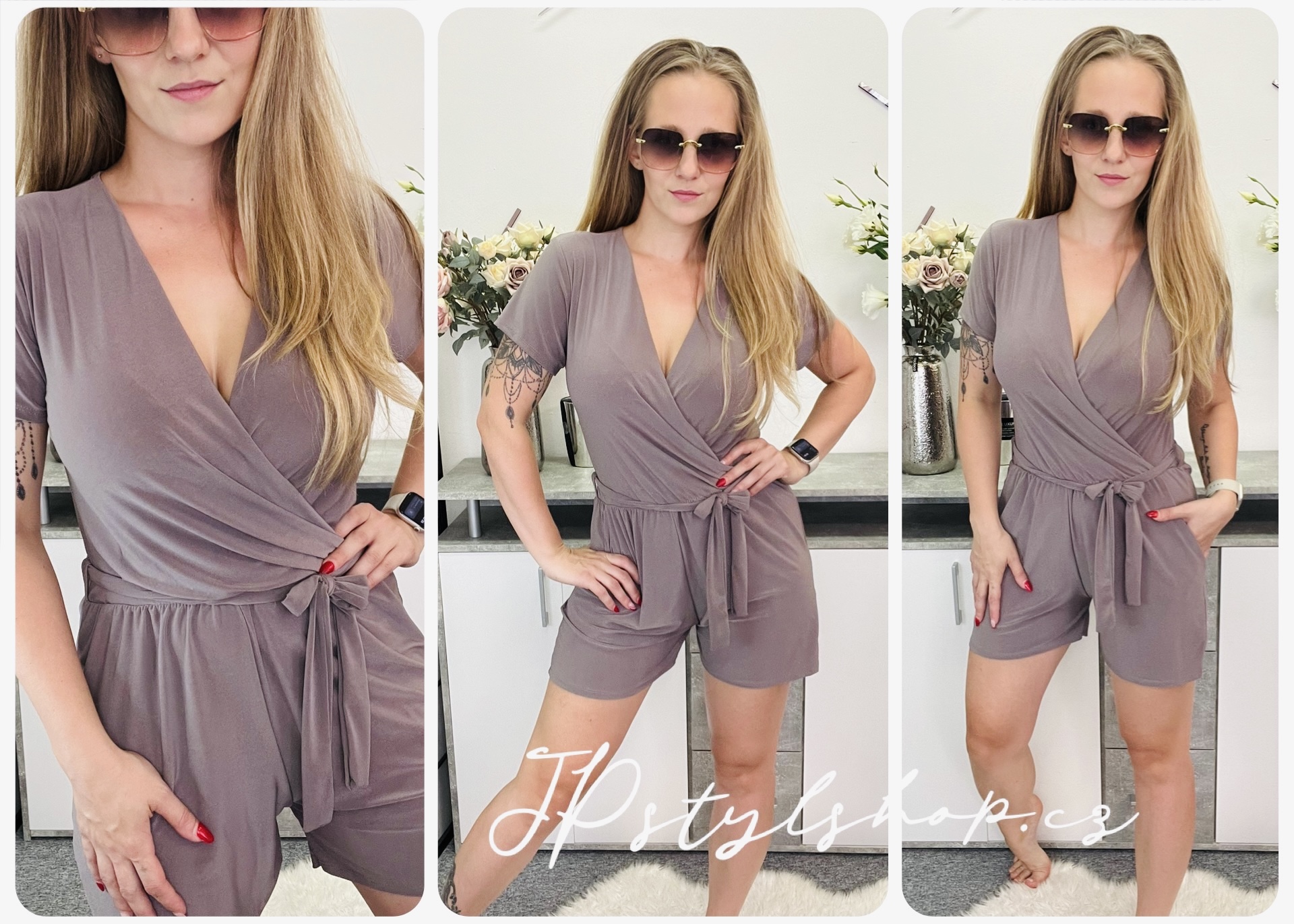 🌸Krátký overal s překříženým vrškem, který efektně zvýrazňuje dekolt. 🌸 V pase je guma pro pohodlné nošení, doplněná o pásek pro dokonalé přizpůsobení a zvýraznění postavy. 🌸
