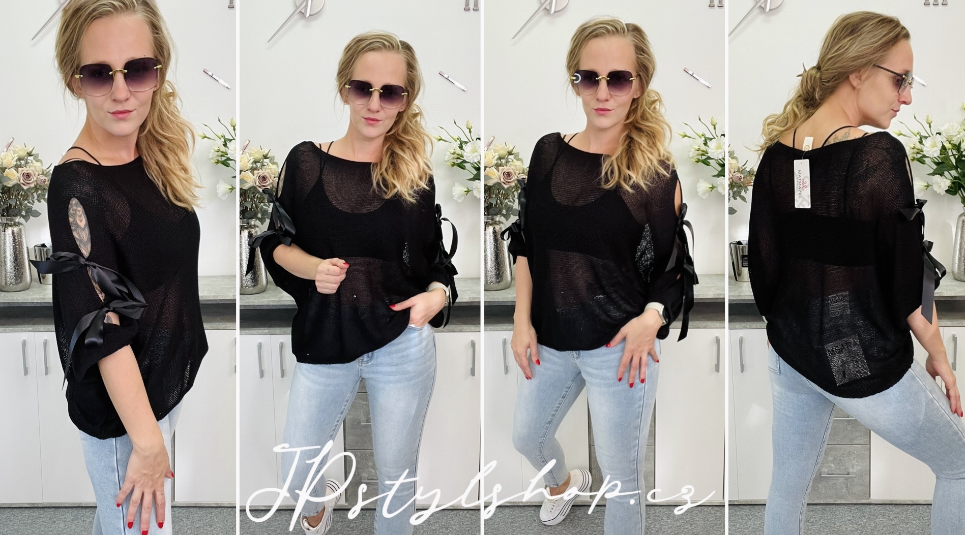 Stylový a pohodlný svetřík s netopýřím volným střihem, který skvěle padne skoro každé postavě. Rukávy o délce 7/8 jsou ozdobeny originálními průřezy a roztomilými mašličkami, které dodávají svetru jedinečný vzhled.    PŘÍZOVÝ SVETŘÍK S MAŠLIČKAMI lodičkový výstřih netopýří ... celý popis