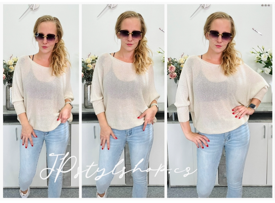 Svetr je navržený s elegantním lodičkovým výstřihem a volným netopýřím střihem, který dodává tvému outfitu ležérní šmrnc.