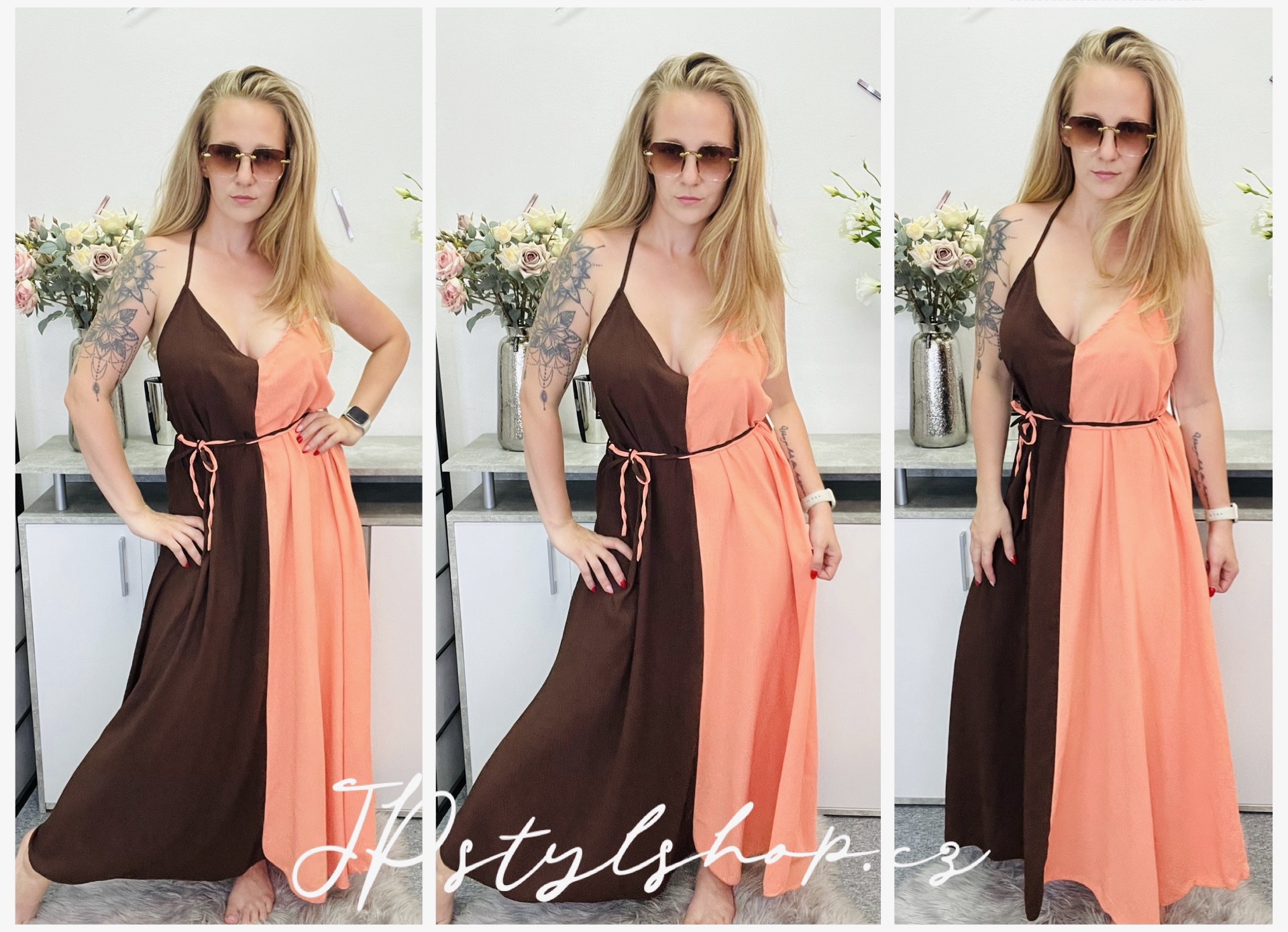 🌸Dlouhé dvoubarevné šaty na tenká ramínka představují ideální volbu pro teplé letní dny i večerní události. 🌸 Ramínka jsou vzadu elegantně překřížená, což dodává šatům zajímavý detail a zároveň zdůrazňuje krásu odhalených zad. 🌸 Šaty mají hluboce vykrojená záda, která v kombinaci s lehkým materiálem... celý popis
