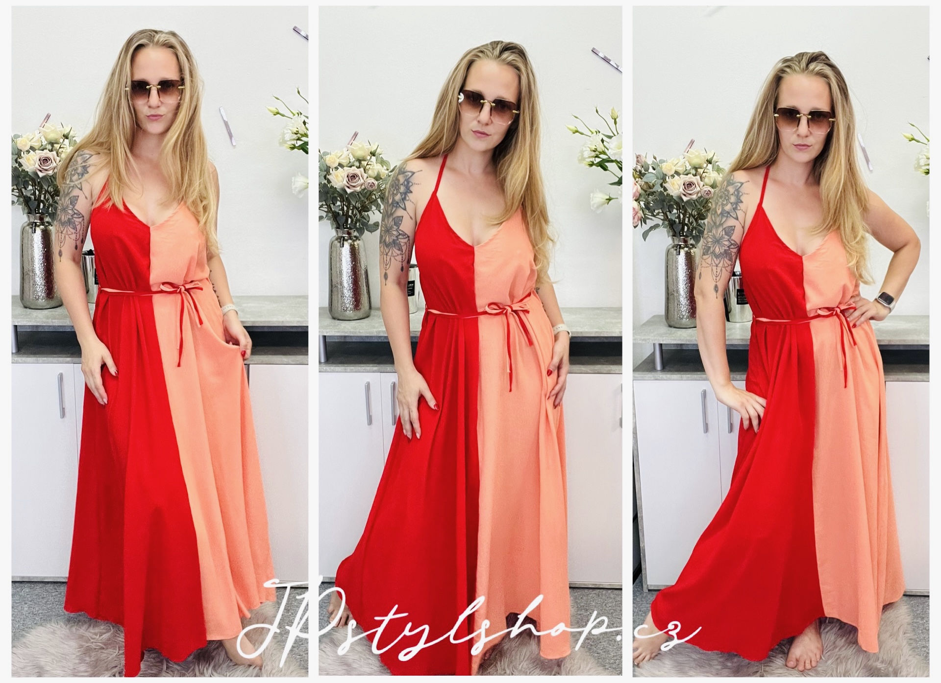 🌸Dlouhé dvoubarevné šaty na tenká ramínka představují ideální volbu pro teplé letní dny i večerní události. 🌸 Ramínka jsou vzadu elegantně překřížená, což dodává šatům zajímavý detail a zároveň zdůrazňuje krásu odhalených zad. 🌸 Šaty mají hluboce vykrojená záda, která v kombinaci s lehkým materiálem... celý popis