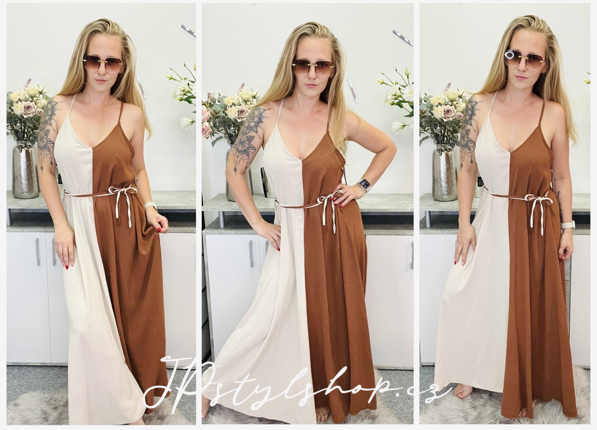 🌸 Vyrobeny z lehkého, prodyšného materiálu, který se krásně splývá a pohybuje s Vámi při každém kroku. 🌸 Šaty jsou ideální jak na denní nošení, tak i na večerní příležitosti, dovolenou nebo zahradní párty. 🌸 Kombinace dvou barev přináší svěží a moderní vzhled, který snadno sladíte s různými doplňky a obuví. 🌸