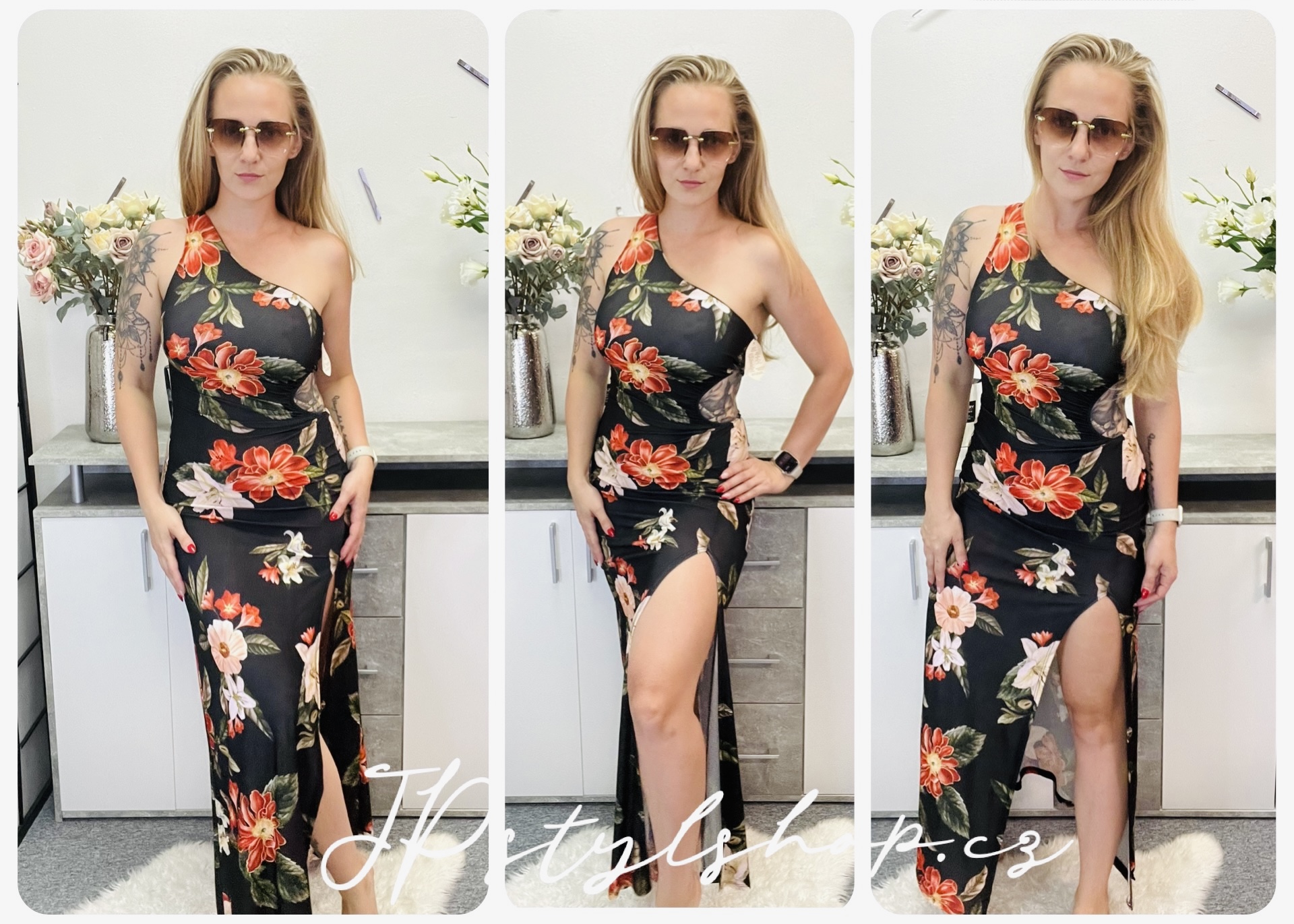 Tyto dlouhé šaty s květinovým motivem představují dokonale ženský a elegantní kousek do Vašeho šatníku. 🌸 Design na jedno rameno dodává modelu originální a moderní vzhled, který upoutá pozornost a podtrhne Vaši jedinečnost. 🌸 Velký rozparek na levé straně přidává šatům svůdný a smyslný detail, který zároveň usnadňuje pohyb a přináší dávku ležérní elegance. 🌸 Šaty jsou výronem z velmi pružného a lehkého materiálu, který je zároveň prodyšný, takže se v nich budete cítit příjemně i během teplejších dnů.🌸 Tento kousek je ideální volba na večerní akce, romantické rande nebo speciální příležitosti, kdy chcete zazářit a zároveň se cítit pohodlně. 🌸