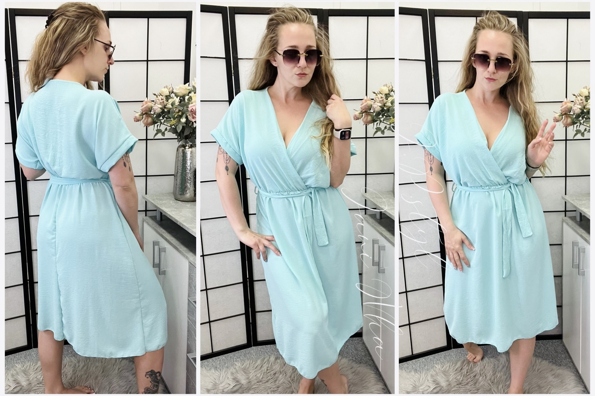 Šaty Elizabeth vršek netopýřího střihu v pase guma a pásek hluboký překřížený výstřih velmi příjemné, pružné 100% poliester velikost oversize sedne do XXL délka 115cm, šířka v podpaží cca 2* 50cm - díky překřížení a netopýřího střihu i více, šířka v pas... celý popis