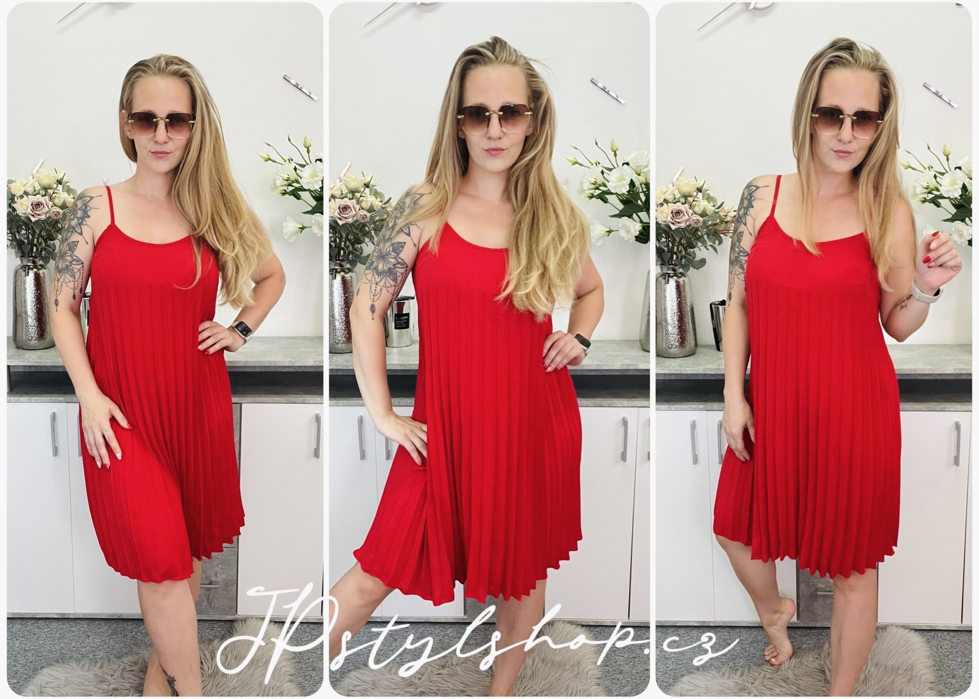 Krátké plísové šaty na tenká ramínka, která působí elegantně a zároveň lehce. 🌸 Díky střihu do A šaty krásně splývají a vytvářejí jemnou, ženskou siluetu. 🌸 Lehký materiál dodává pocit vzdušnosti a pohodlí, což je ideální pro teplejší dny. 🌸 Tyto šaty jsou skvělou volbou pro všechny, kdo hledají originální a stylový kousek do svého šatníku.🌸