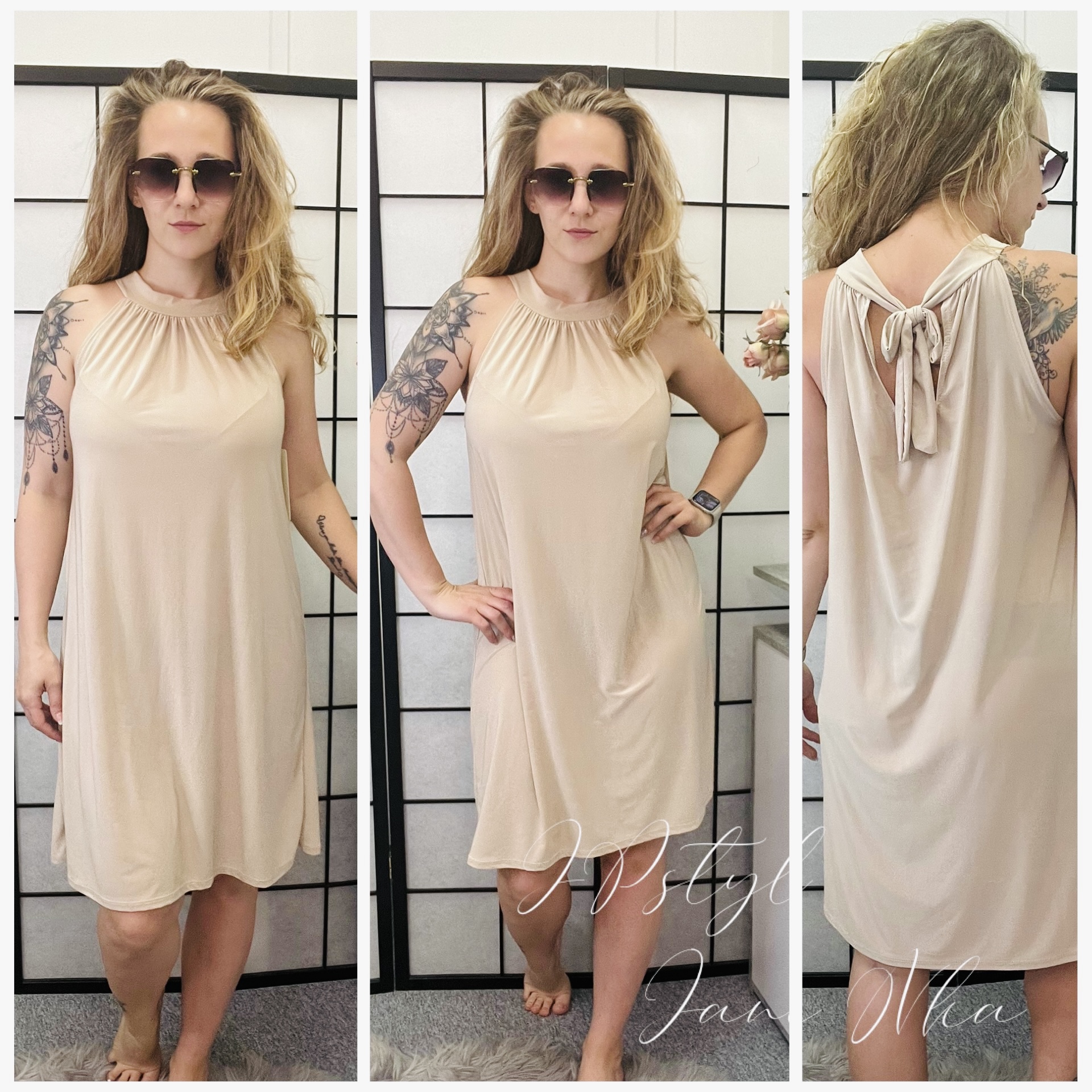 - šaty mají vázání za krkem, díky tomu jsou šaty velmi přizpůsobivé postavě