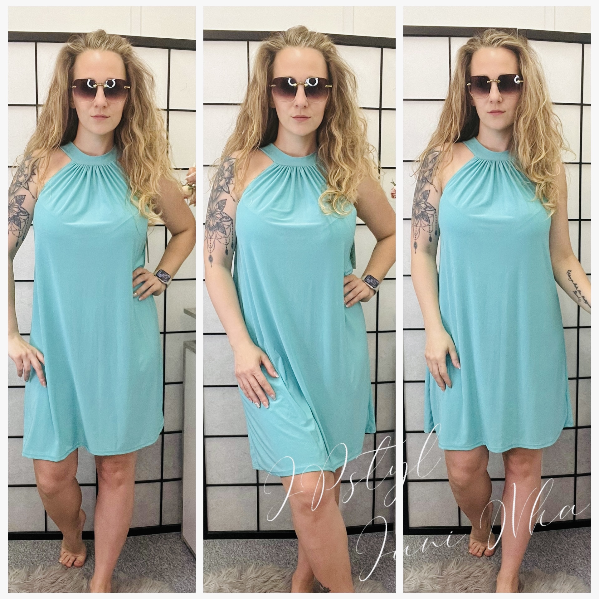- šaty mají vázání za krkem, díky tomu jsou šaty velmi přizpůsobivé postavě