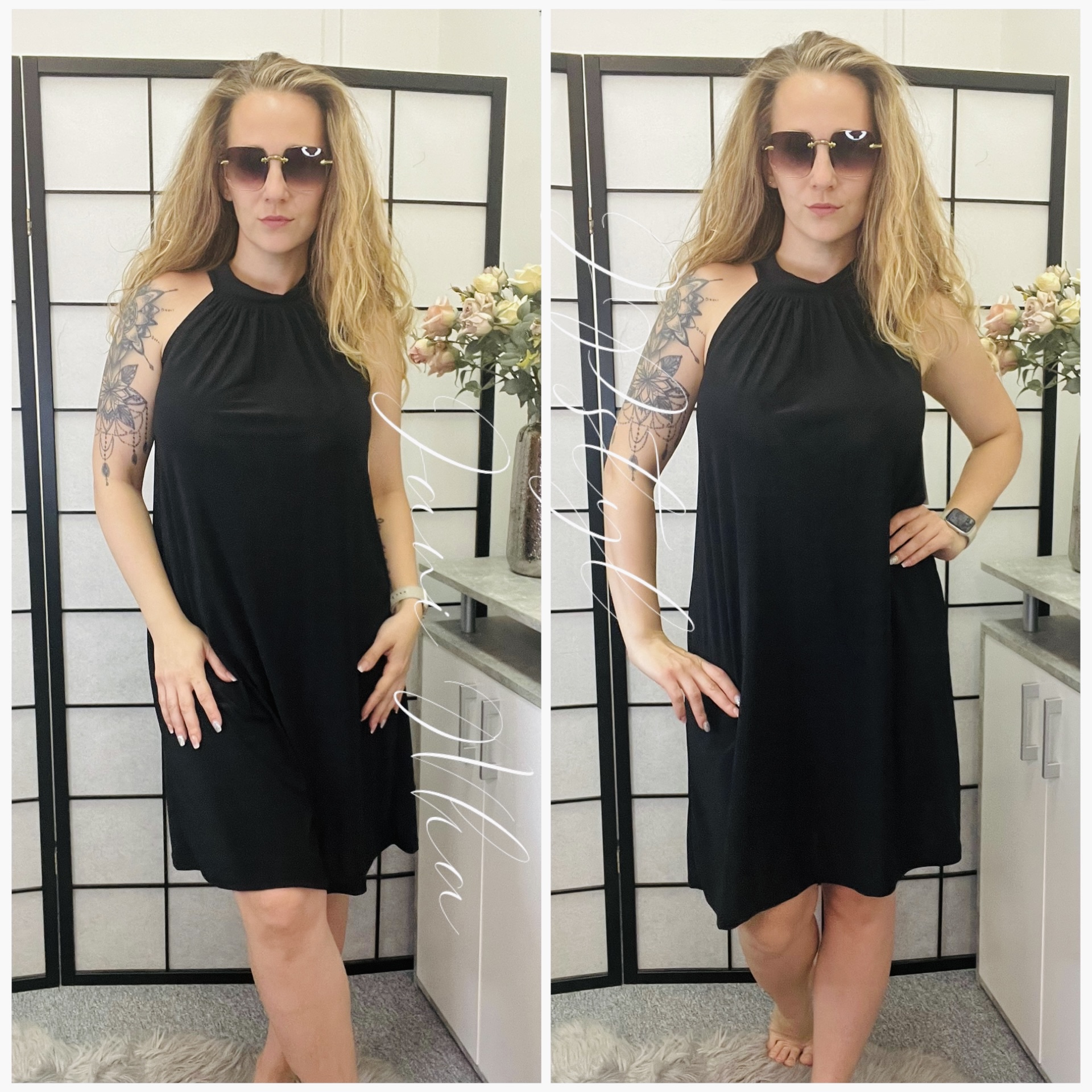 - šaty mají vázání za krkem, díky tomu jsou šaty velmi přizpůsobivé postavě