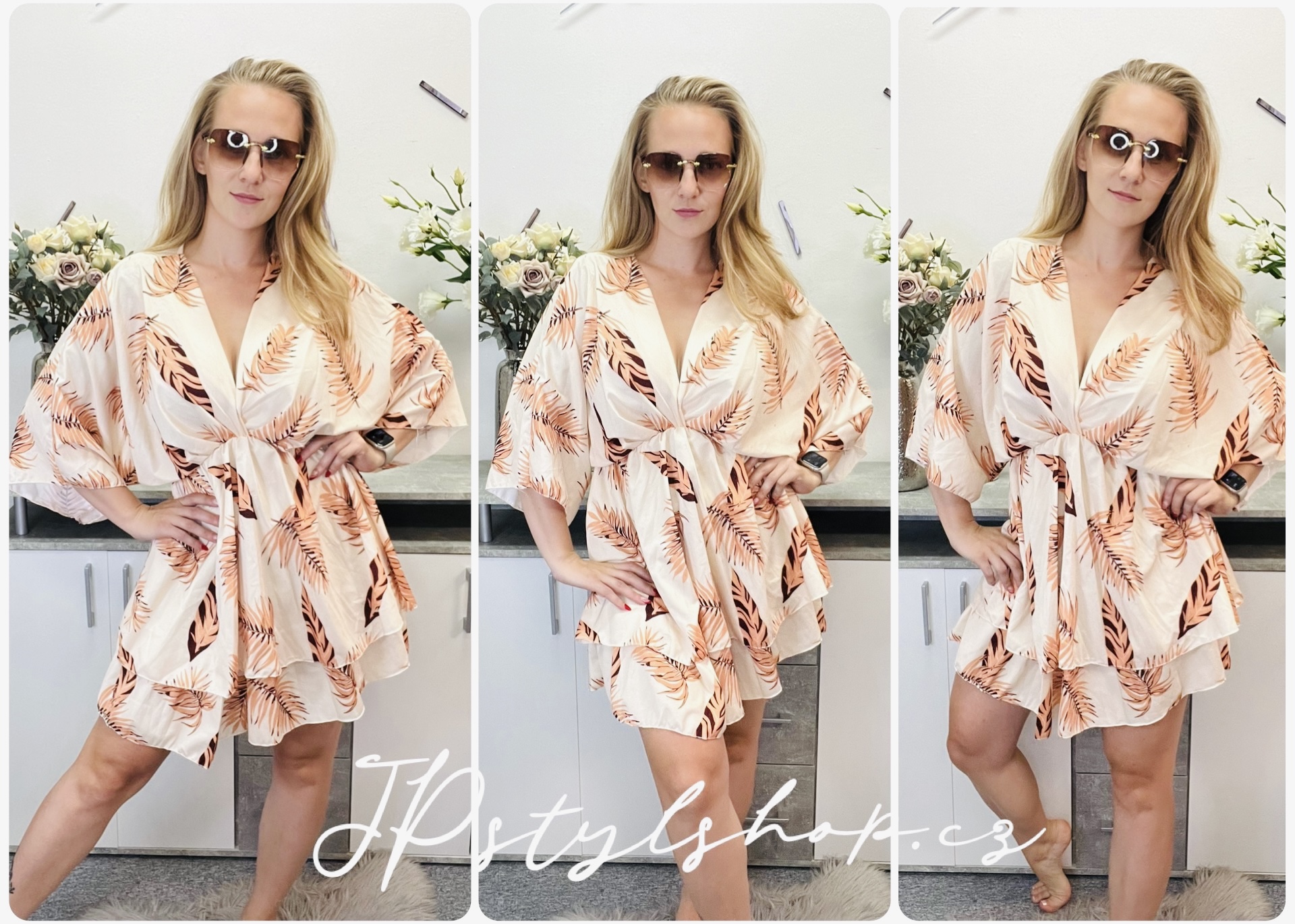 Krátké šaty s originálním motivem, které zaujmou svým netopýřím střihem vršku pro maximální volnost a pohodlí. 🌸 Pod prsy je praktická guma, která zvýrazňuje pas a dodává šatům krásnou ženskou siluetu. 🌸 Širší sukně nabízí jemný objem a stylový Look, doplněná delší spodničkou ve stejném motivu jako šaty, která zajišťuje pohodlné nošení a nádherný celkový efekt. 🌸