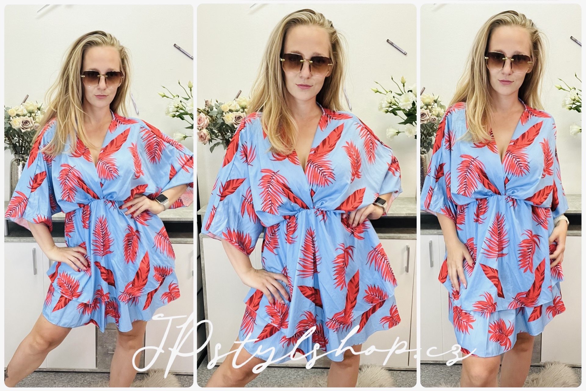 Krátké šaty s originálním motivem, které zaujmou svým netopýřím střihem vršku pro maximální volnost a pohodlí. 🌸 Pod prsy je praktická guma, která zvýrazňuje pas a dodává šatům krásnou ženskou siluetu. 🌸 Širší sukně nabízí jemný objem a stylový Look, doplněná delší spodničkou ve stejném motivu jako šaty, která zajišťuje pohodlné nošení a nádherný celkový efekt. 🌸