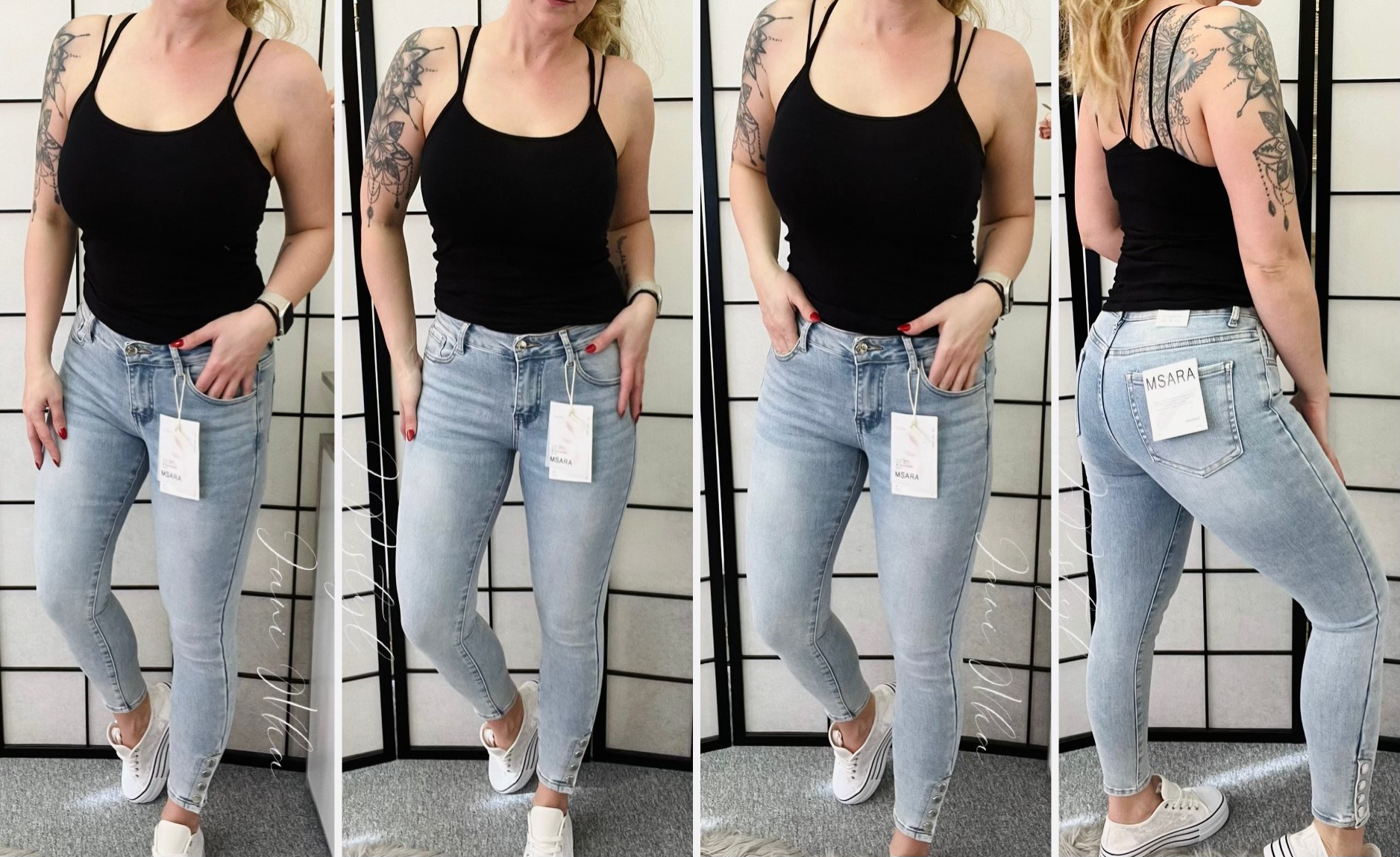 SKINNY RIFLE M'SÁRA (2819) luxusně pružné, luxusně příjemné, měkká riflovina zapínání na knoflík a zip přední i zadní kapsy push/up efekt - vytvoří krásný zadeček rovné úzké nohavice ukončené se zdobením knoflíčku (funkční) 70% bavlna, 25% polyester, 3% viscosa,... celý popis