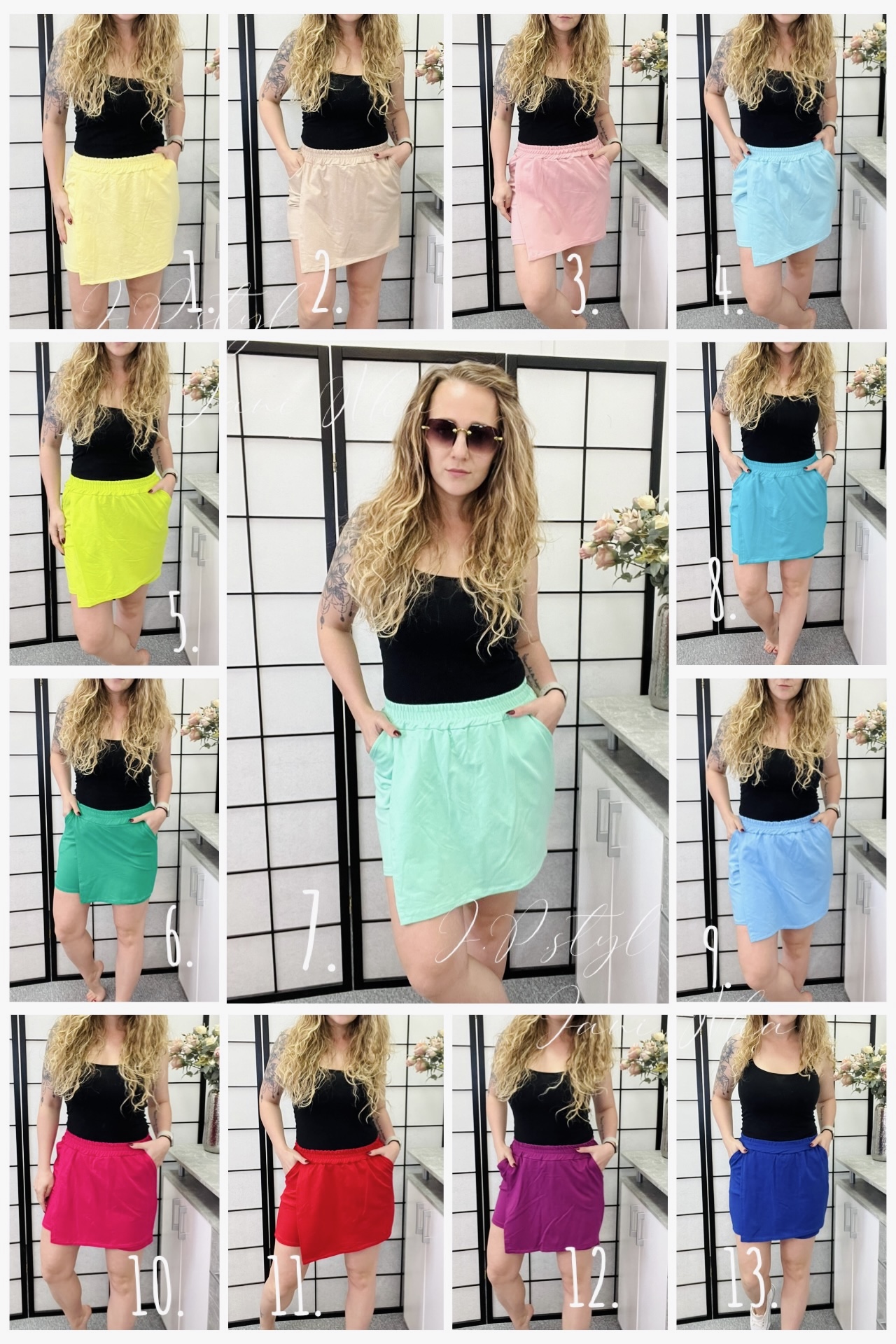 Teplákové kraťasy/sukně Inka z přední strany cíp který tvoří sukni v pase guma boční kapsy 95% bavlna, 5% elastan velikost oversize sedne do XL délka 44cm, pas 2* 32/56cm  Barvičky očíslované:  1. žlutá, 2. krémová, 3. pudrová, 4. tyrkys, 5. limetová, 6. zele... celý popis