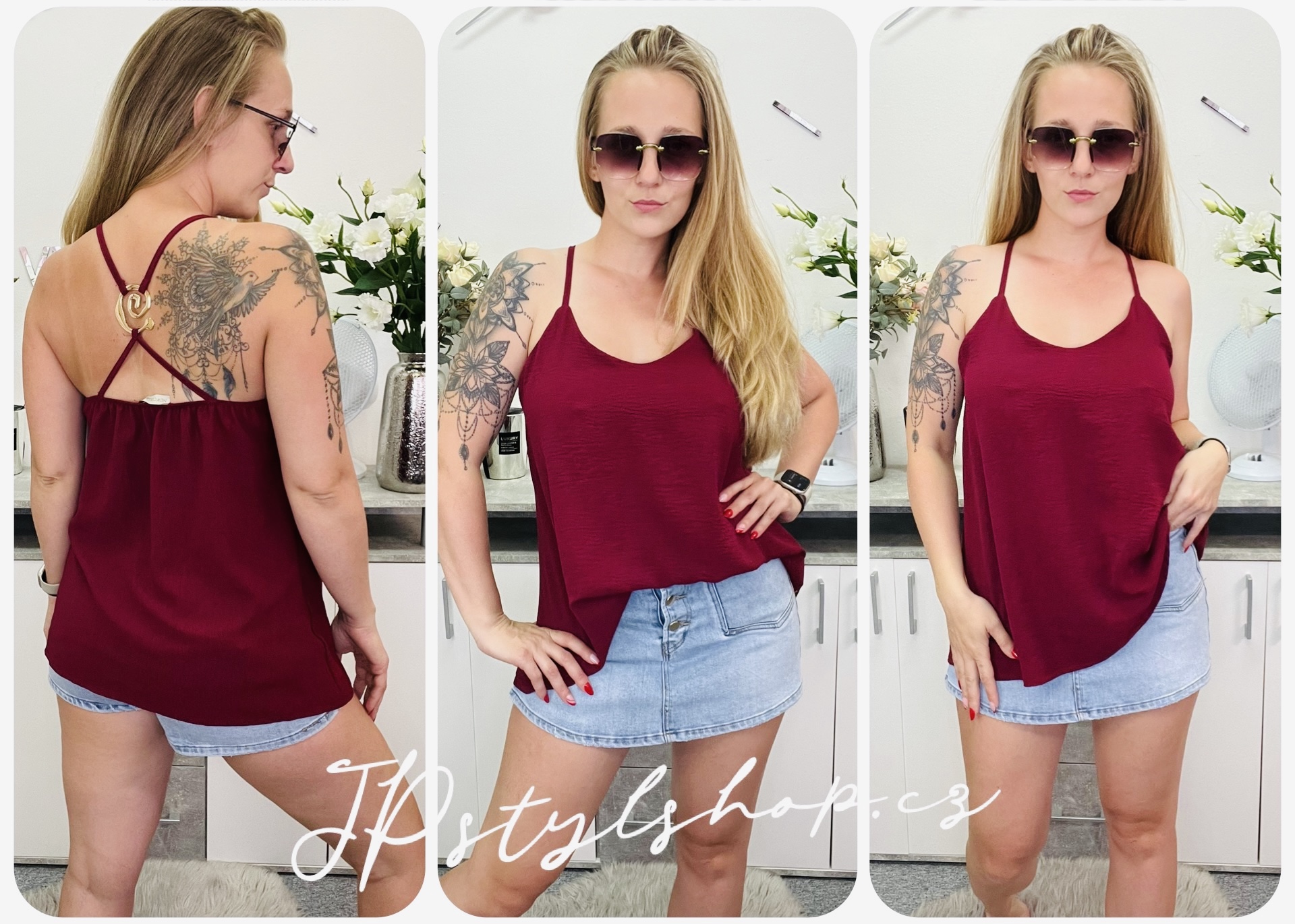 🌸Toto elegantní tílko je navrženo na tenká, jemná ramínka, která jsou na zádech propojena ozdobným kovovým symbolem, který dodává celému modelu zajímavý a originální detail. 🌸