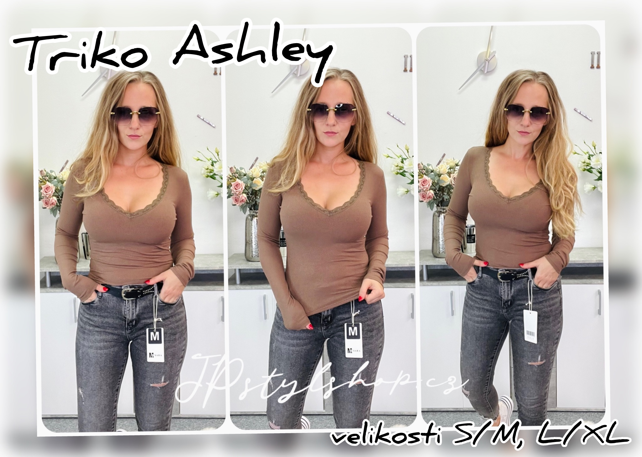 Triko Ashley 🍂🍁Příjemné a pružné triko s dlouhým rukávem a hlubokým výstřihem lemovaným krajkou, které zajistí komfort po celý den. 🍁 🍂Elegantní a jednoduchý kousek, který se snadno kombinuje s různými styly a doplňky.🍁🍂   Triko Ashley hluboký výstřih lemovaný krajkou dlouhý rukáv žebrový materiá... celý popis