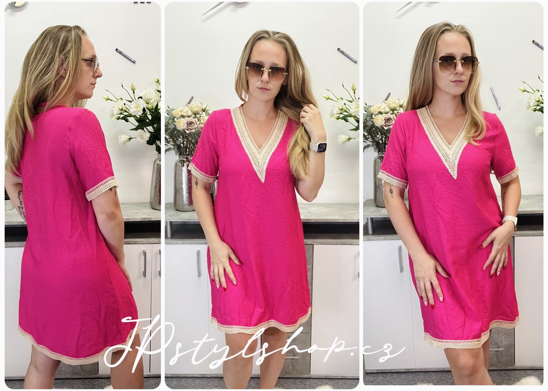 Jednobarevná tunika s lehkým vačkovým střihem, který dokonale padne a zjistí pohodlné nošení. 🌸 Tunika je elegantně lemovaná jemnou krajkou🌸 Vyrobena z lehké a příjemné viskózy, která je prodyšná a skvěle se hodí na teplejší dny. 🌸