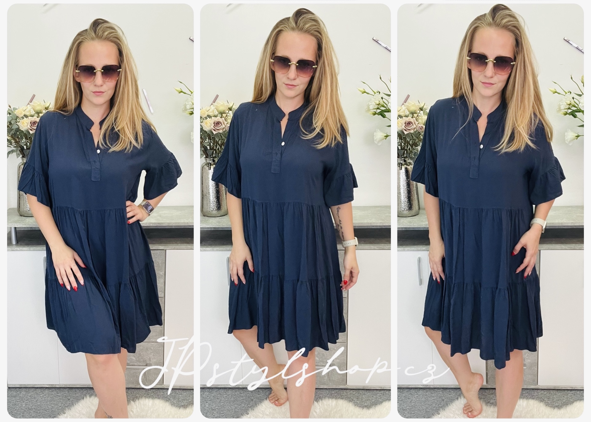 🌸Tunikové šaty s výstřihem do V, který je doplněný dvěma knoflíčky. 🌸 Delší rukávky zakončené volánkem dodávají šatům jemný a ženský vzhled. 🌸 Sukně od podprsí je řasená, což vytváří působivý a nadýchaný efekt. 🌸 Volný střih do áčka zaručuje pohodlí a volnost pohybu.🌸
