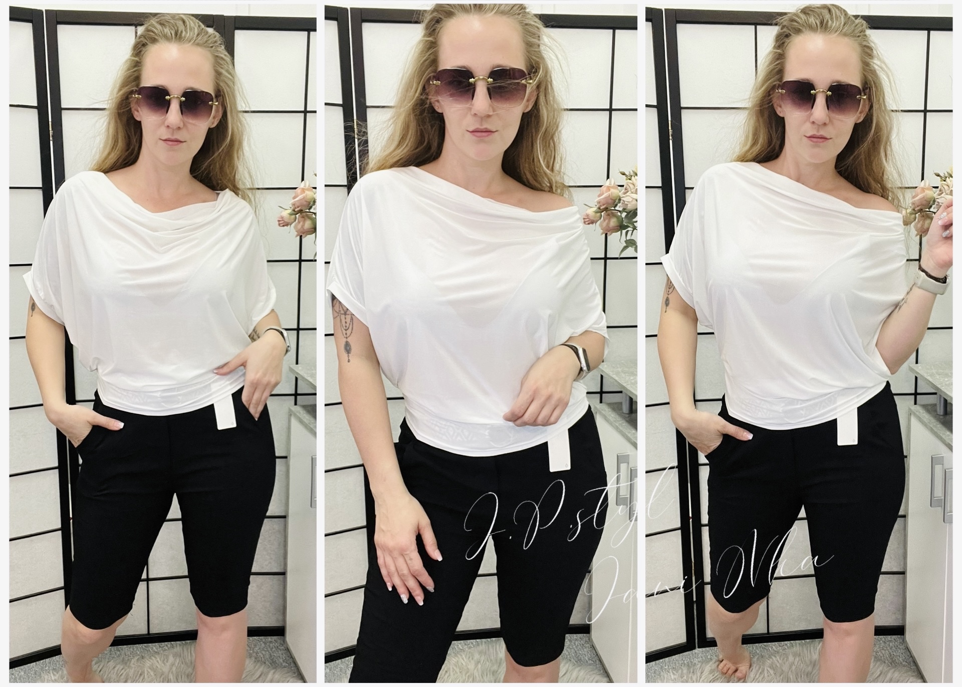 Vzdušná halena Julia výstřih široký lodičkový s vodou netopýří střih v pase zúžený 95% poliestere, 5% elastan velikost oversize sedne do L/XL délka 62cm, šířka v podpaží cca 2* 58cm - netopýří, spodní šířka 2* 42/54cm Barvičky jsou očíslované: 1. Bílá2. Béžová3. Svět... celý popis